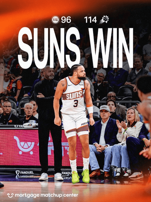 虎扑01月30日讯今天NBA常规赛太阳主场对阵活塞的比赛已经结束。全场战罢,太阳以114-96战胜活塞。