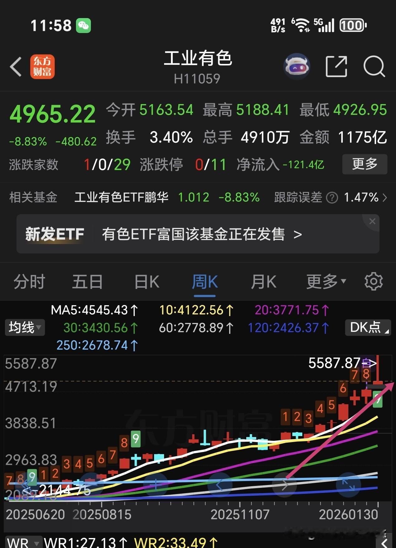 工业有色金属及细分有色金属,大跌超8%,是继续持仓待涨,还是走人?今天早盘,受不靠谱改口外围消息影响,黄金白银大跳水,有色金属板块能源金属板块跟随大跌,甚至多数股票跌停,资金避险情绪增加。 下图是工业有色金属走势,日线跌破了5日线支撑,接近10日线支撑,短线急跌,估计会有个修复。周线目前还是上升趋势,还没有触及5 周线,大趋势没有破坏。 操作观点,稳健的可以先出来,激进派可持仓观望,甚至可以适当补仓,有言道,富贵险中求。 这个板块受国际地缘政治因素影响很大,不确定性大,收益与风险共存。 以上观点仅供参考,不构成投资依据。
