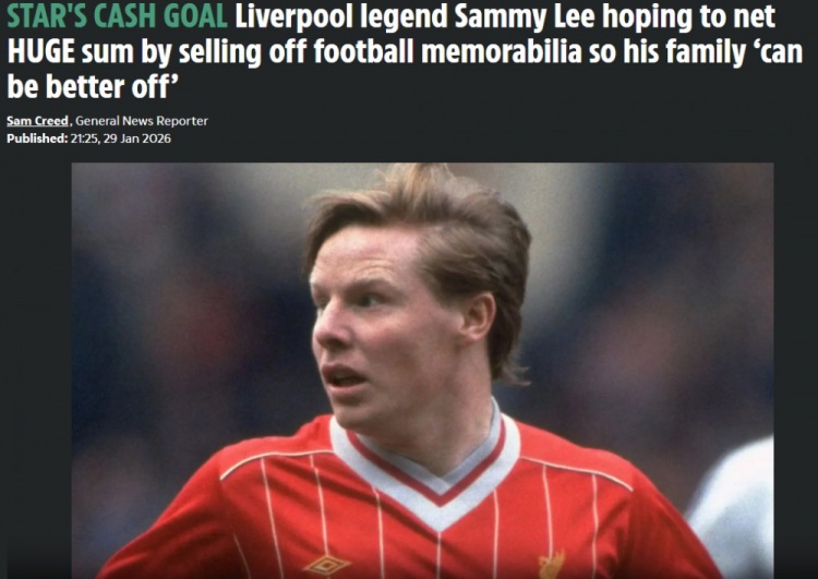 直播吧1月30日讯《太阳报》报道,前利物浦球星萨米·李希望通过出售他的足球纪念品获得10万英镑。