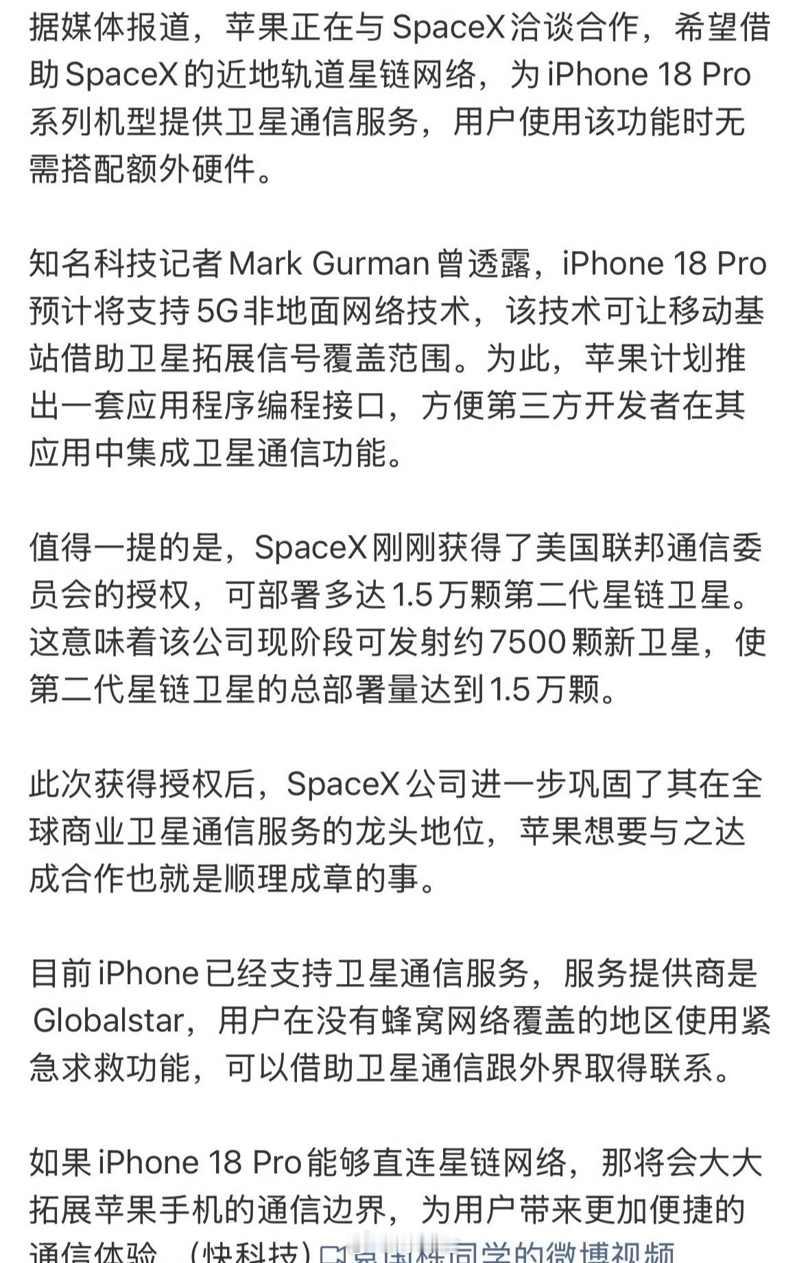 iPhone18Pro或直连星链!今年苹果又是和谷歌合作植入Gemini,又是和马斯克合作直连星链!记得买港版!目前中国台湾也加入了名单,稍后将会支持星链