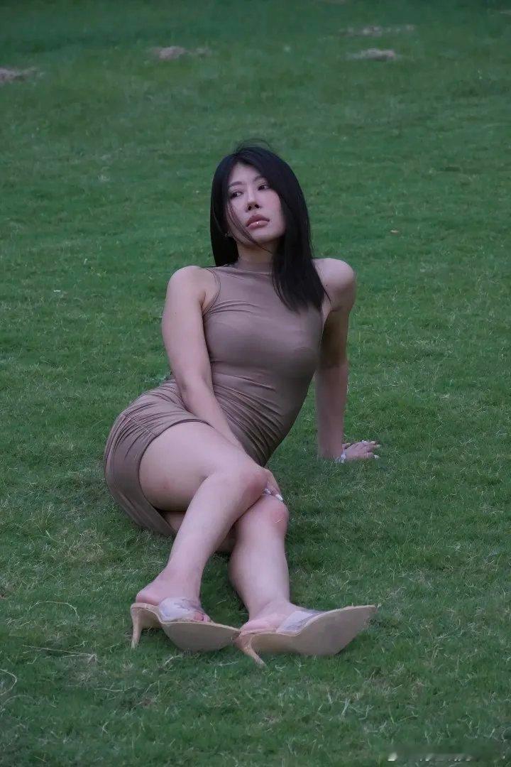 夜晚街头的优雅少女,浅灰色套装搭配黑色链条包,尽显时尚与魅力。性感紧身裤穿搭紧