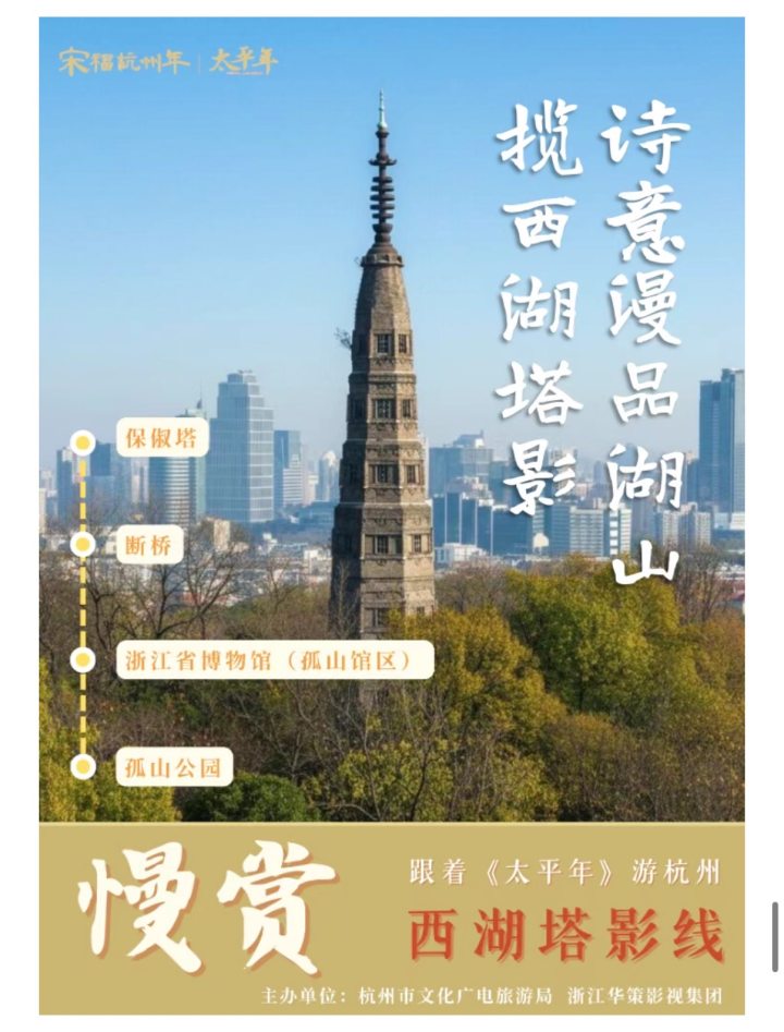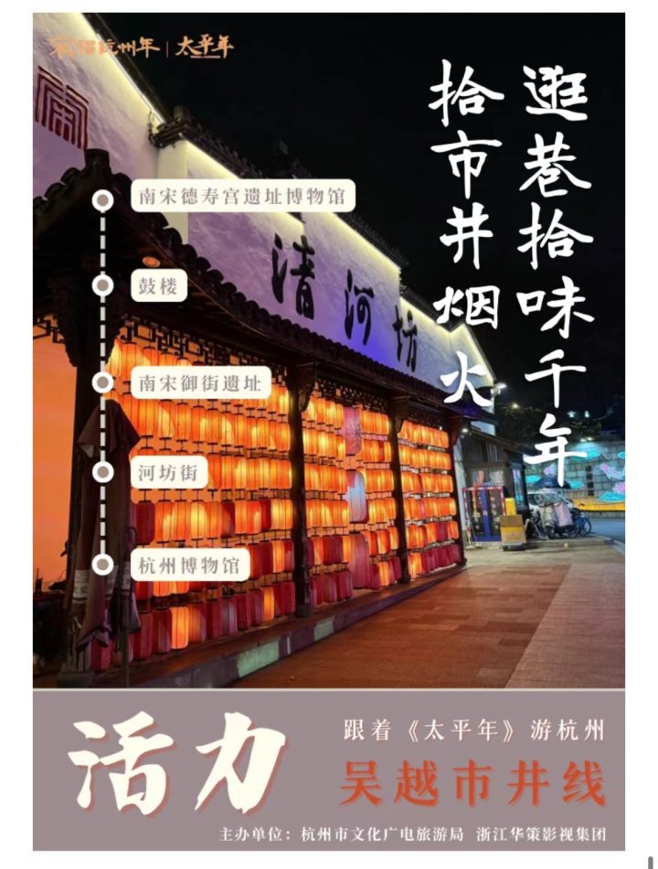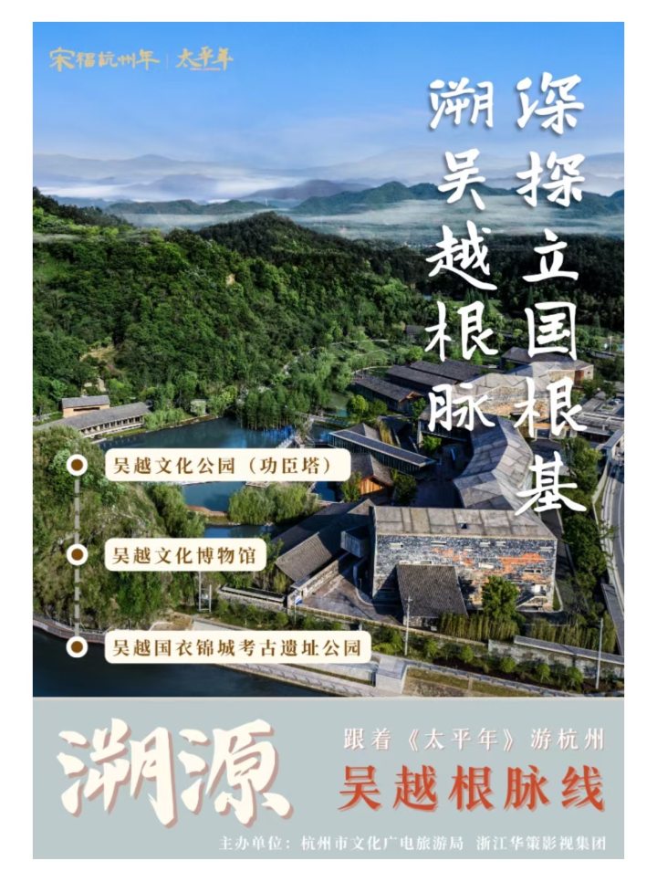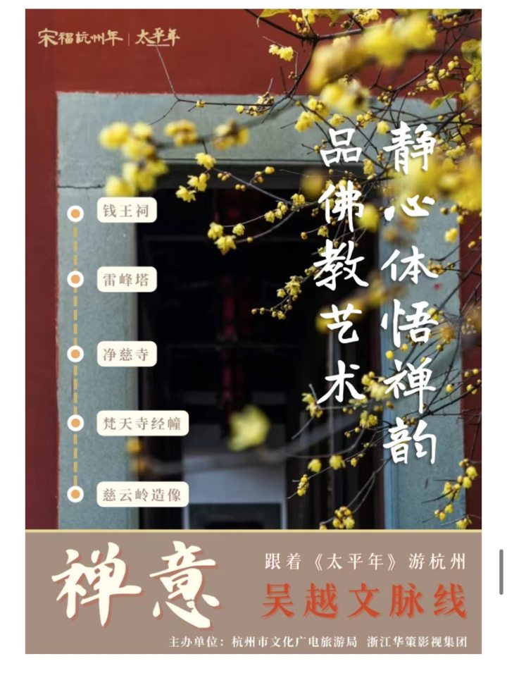 为让大家沉浸式触摸吴越文化的千年底蕴,杭州市文化广电旅游局联动《太平年》,不仅推出了“宋福杭州年——跟着《太平年》游杭州”集章打卡、钱王祠线下主题沉浸展等活动,还同步推出了五条吴越国文化主题新春线路。