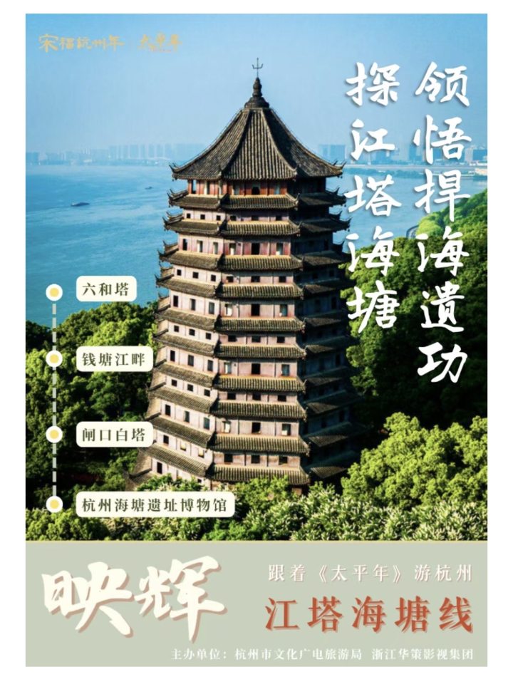 为了更好地宣传吴越文化,杭州市文化广电旅游局联动浙江华策影视集团推出“跟着《太平年》游杭州”集章打卡活动。精选吴越文化博物馆、吴越国衣锦城考古遗址公园、钱王祠、六和塔、闸口白塔、清河坊历史街区六大吴越国文化核心地标搭配定制专属《符牒》集章本与限定印章。