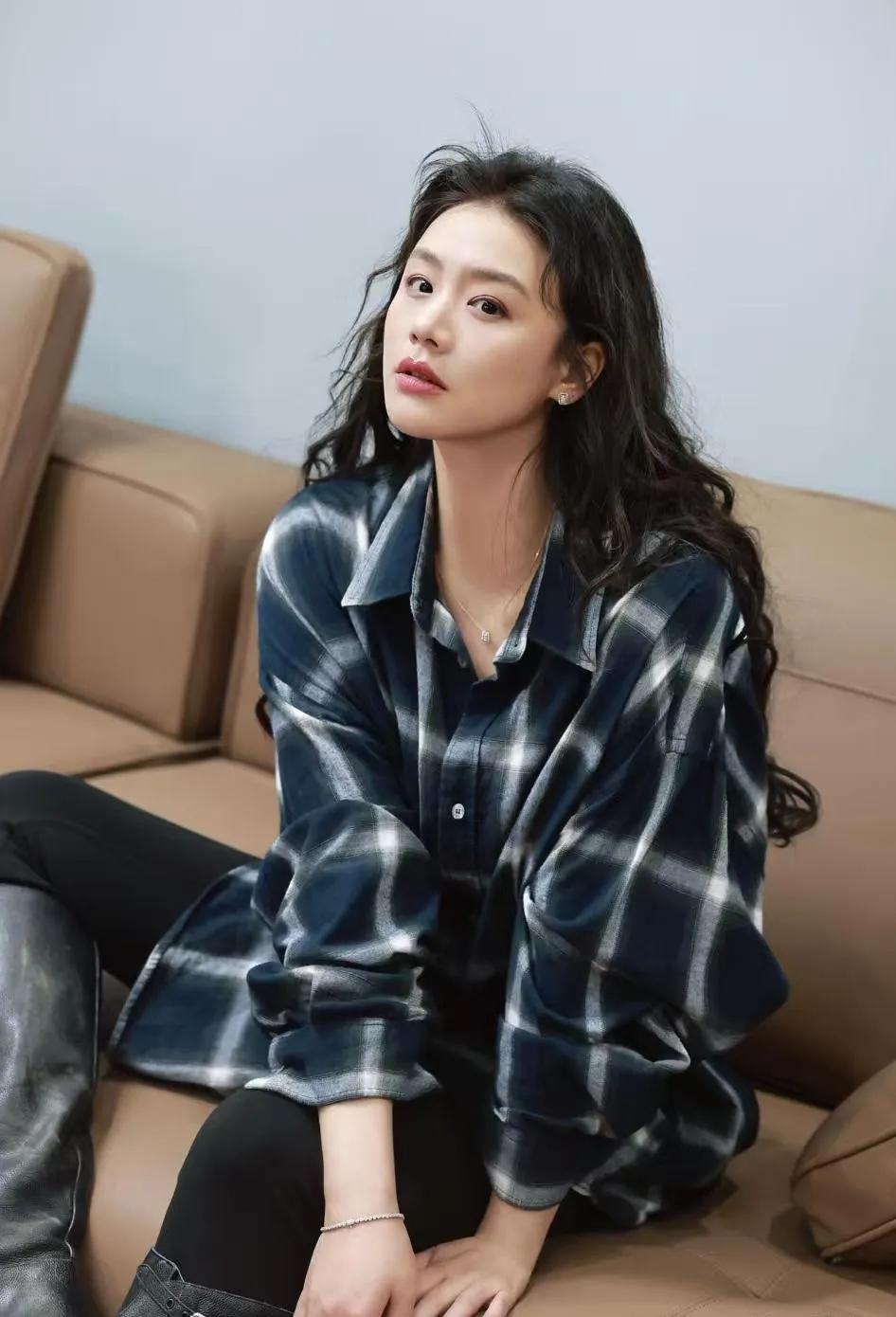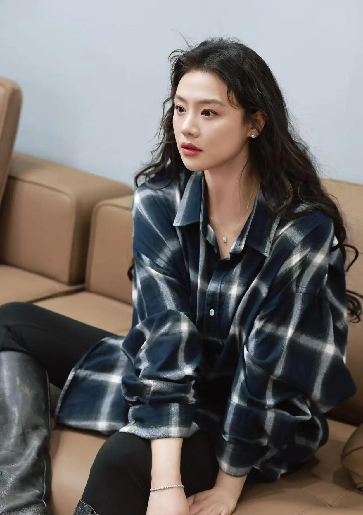 马思纯新造型,羊毛卷封神 马思纯新造型美炸了!一头羊毛卷复古减龄,格子衬衫穿