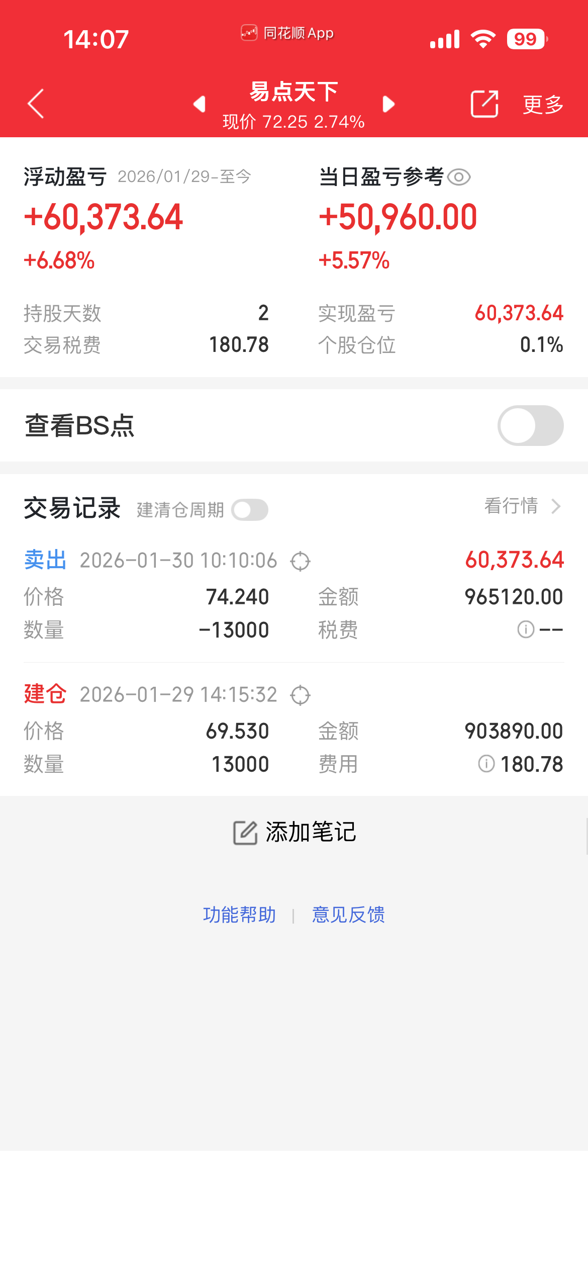 昨天买入的$易点天下 sz301171$ 超短出局!