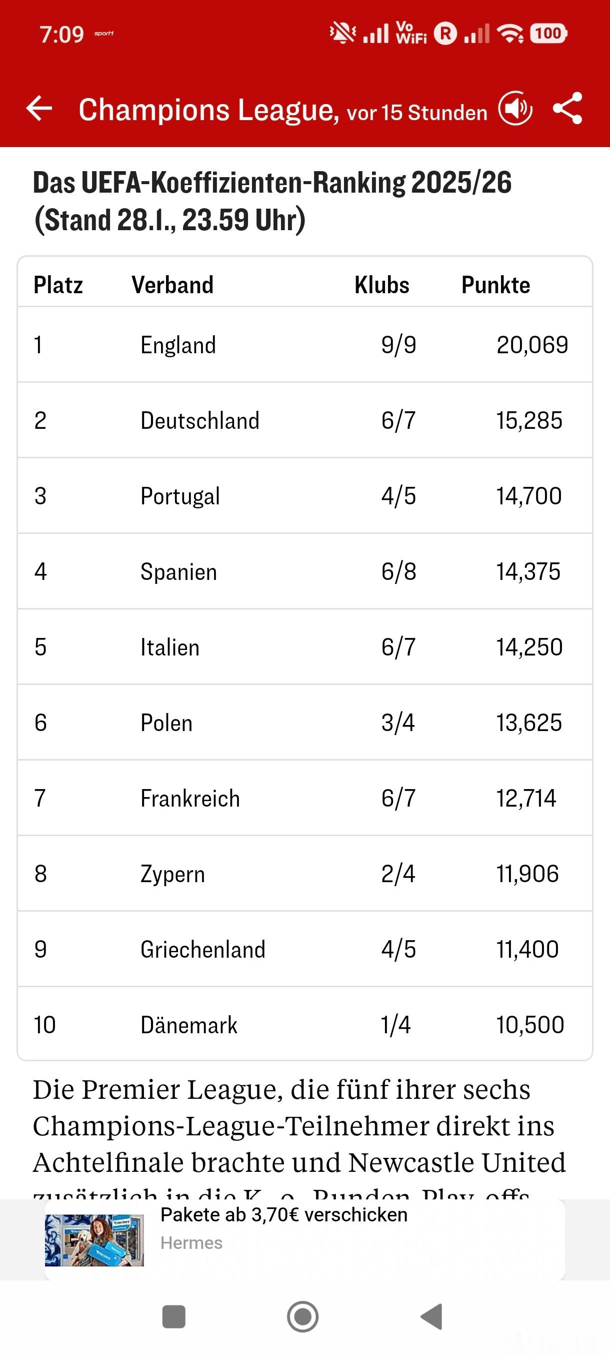 [德甲积分暂居第二]欧战联赛阶段结束,德甲只有法兰克福被直接淘汰,剩下六支球队(拜仁,多特,药厂,斯图,弗赖堡,美因茨)都直接进入16强或者淘汰赛。至此德甲积分15.285,领先葡超/西甲/意甲,排名第二,如果赛季结束能够保持在前二,德甲下个赛季将获得一个额外的欧冠名额。