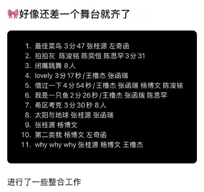 🍉TF家族荣耀之战彩排歌单双人舞台选曲