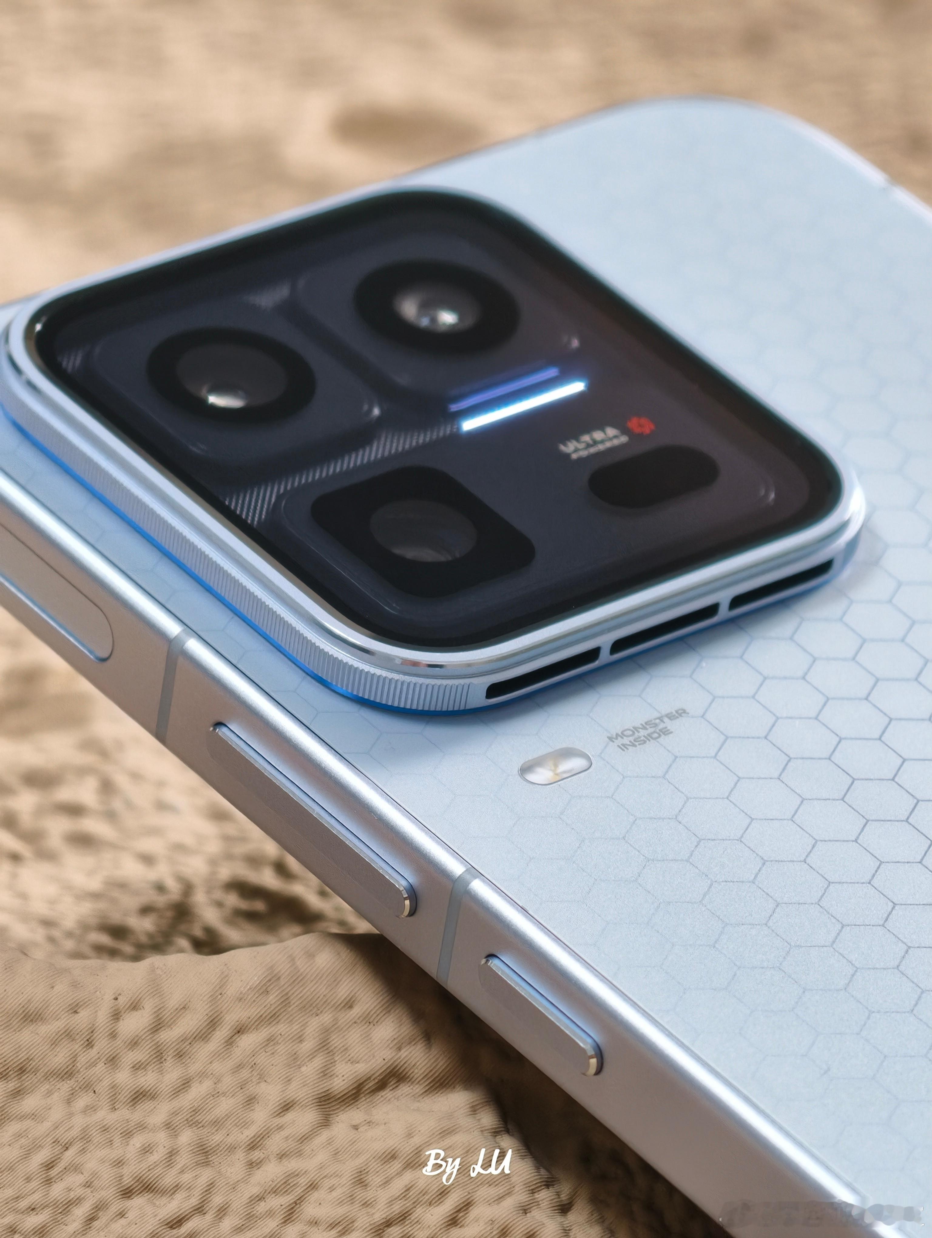 能量矩阵:iQOO15 Ultra 的后盖在光线下会浮现出六边形的蜂巢纹理。黑色款(2077)泛着熔岩橙,银色款(2049)则流转着寒光蓝,iQOO 创新地将纹理 / 镀膜 / 打印等工艺集成在 PET 膜片上,实现表面的「双纹双镀」效果,得以实现动态纹理视效。