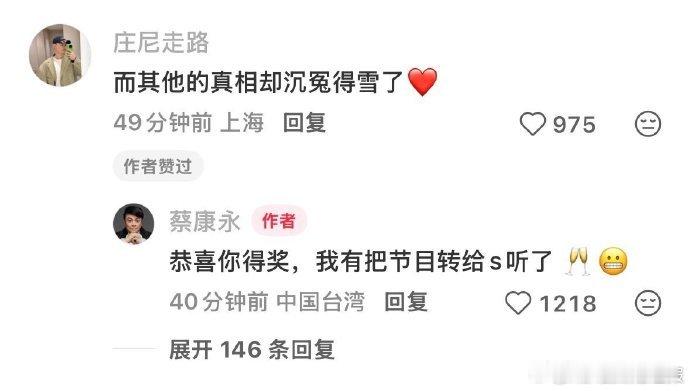 蔡康永把M字闲聊转给小S听了蔡康永把M字闲聊转给了小S 爆火播客M字闲聊被蔡康永转给小S,关联两人过往名场面,网友直呼爷青回,康熙情谊从未褪色。