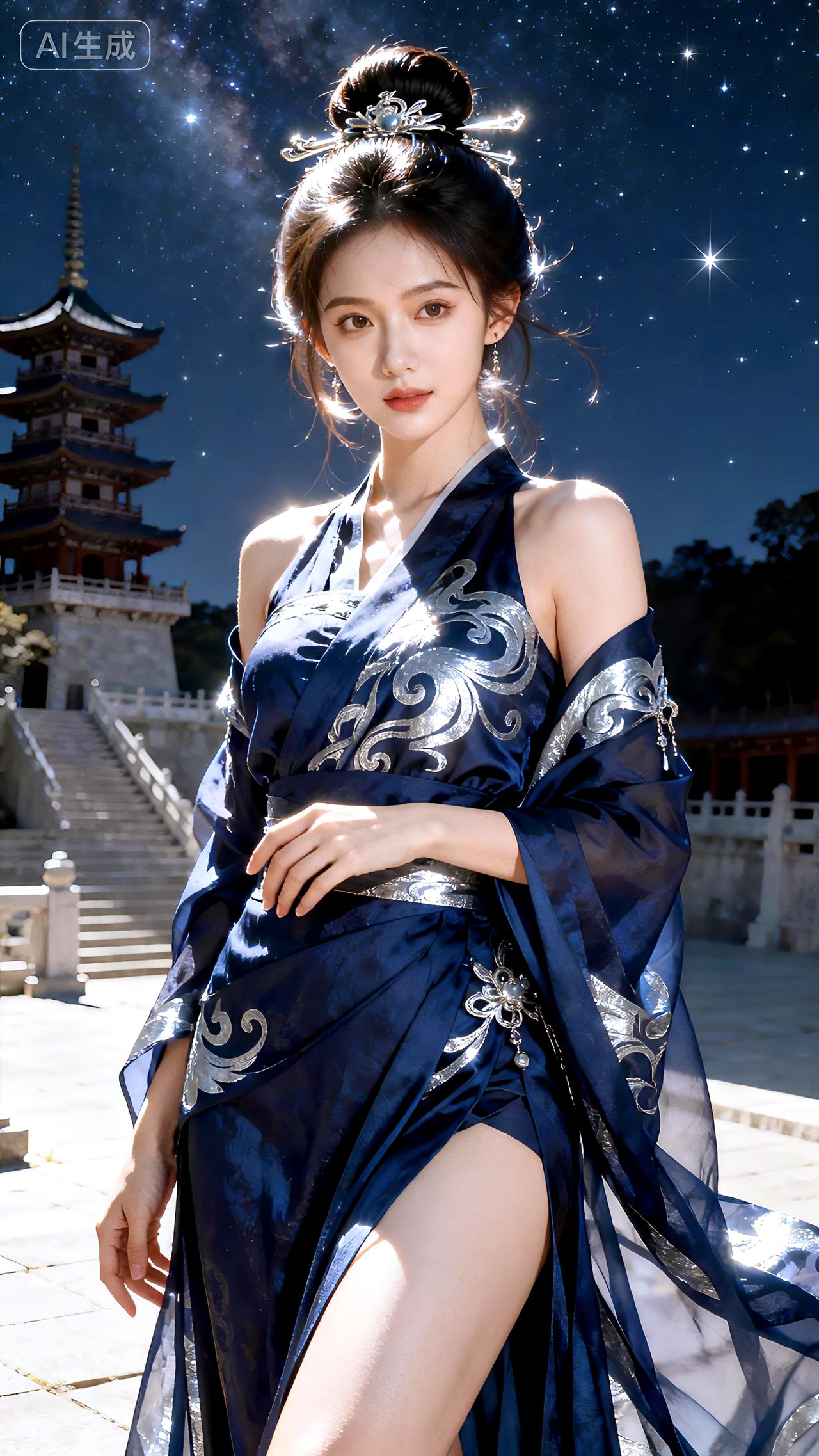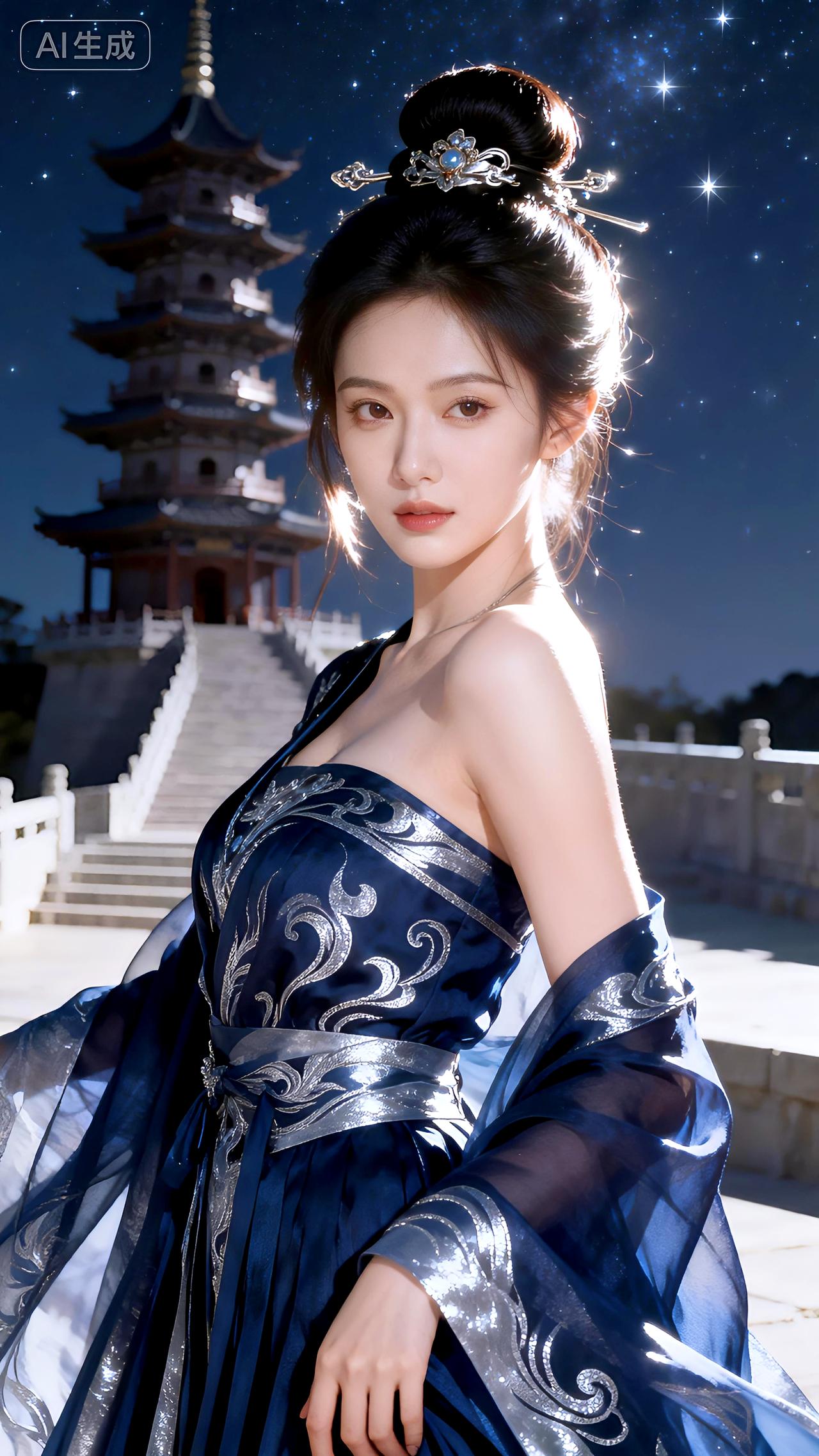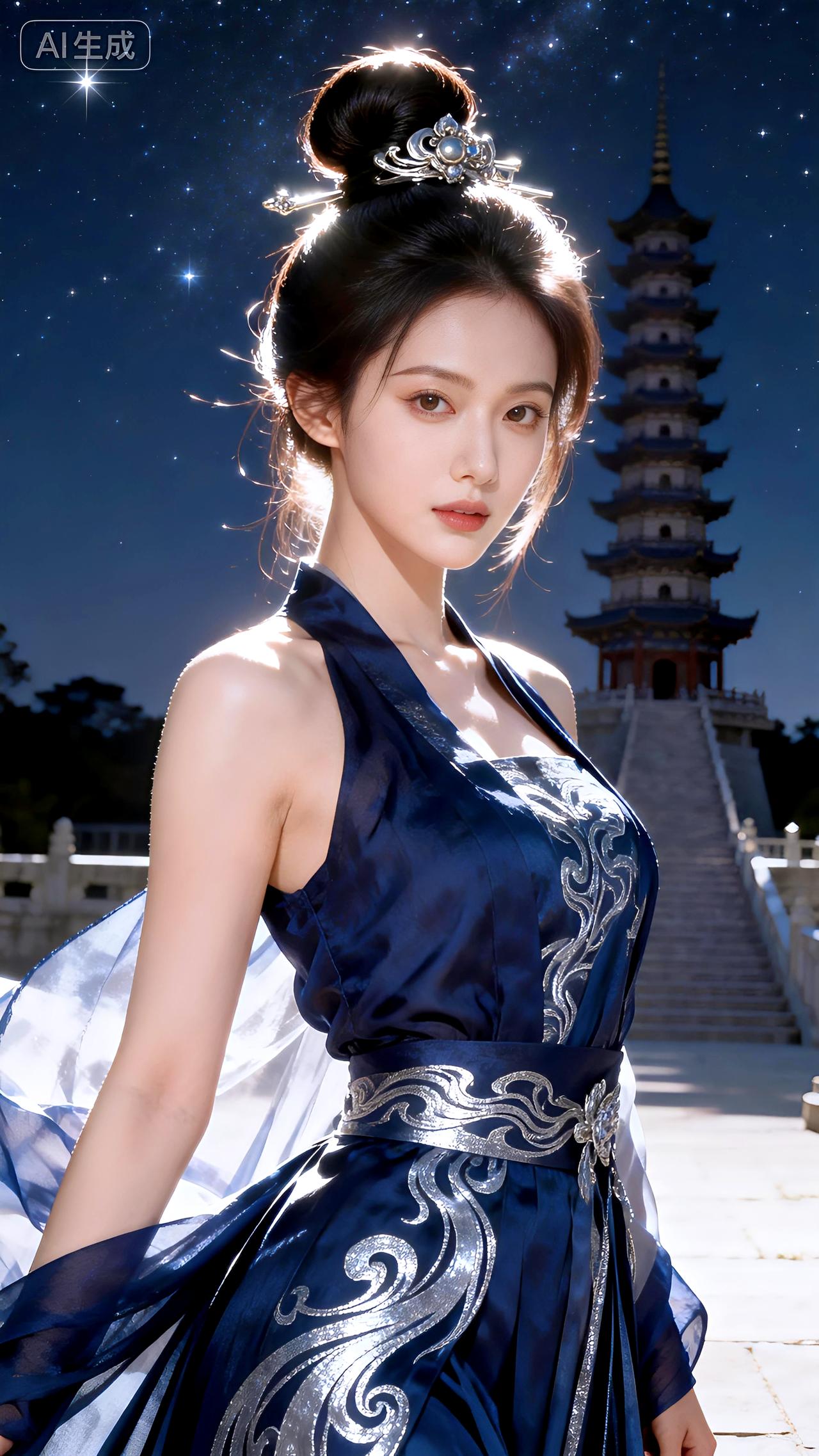 星夜高台墨蓝影,单螺银纹立秋风。豆包 壁纸