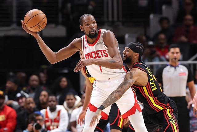 北京时间1月30日,NBA常规赛,休斯敦火箭在客场以104比86击败亚特兰大老鹰。赛后,火箭球星凯文·杜兰特接受了媒体采访。