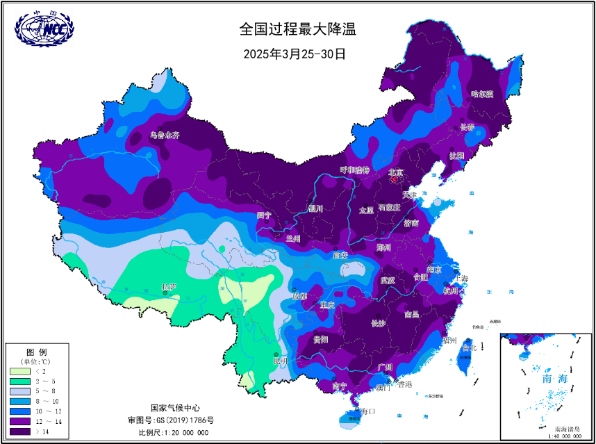 图为2025年3月25日至30日冷空气过程最大降温