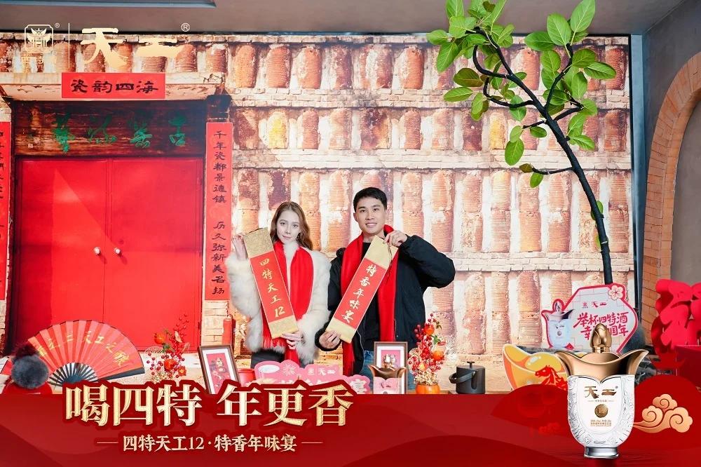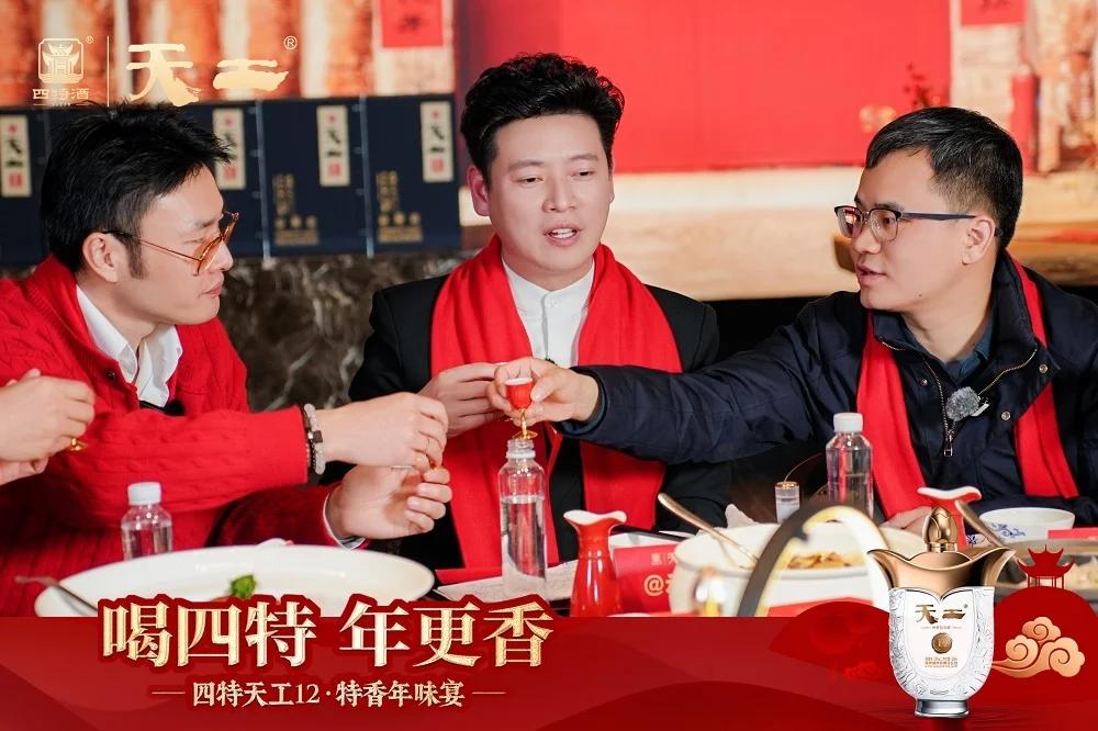本场特香年味宴邀请了你好老板创始人承阳作为话题发起人,带领全场嘉宾开启一场关于“年味”的温暖对话。夜幕时分,晚宴从一瓶四特天工12的开启拉开序幕。来自俄罗斯的抖音达人@薇拉表示:“在俄罗斯,我们也有类似年夜饭的家庭聚会,会用香槟、伏特加庆祝,但氛围感和中国年很不一样。”@薇拉热情分享着俄罗斯的新年习俗。其爱人阿杜补充道:“相比伏特加的浓烈,四特天工12的口感更顺滑温润,没有刺激感”。