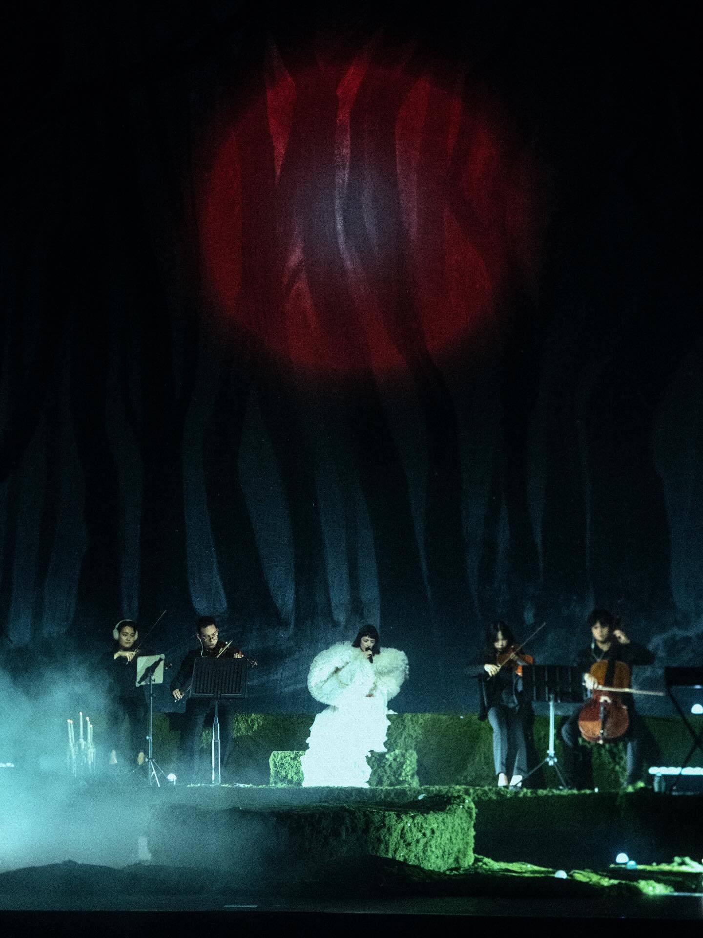 演出服选择麦昆2025春夏与秋冬两季成衣,与演唱会布置的整体氛围和风格融为一体