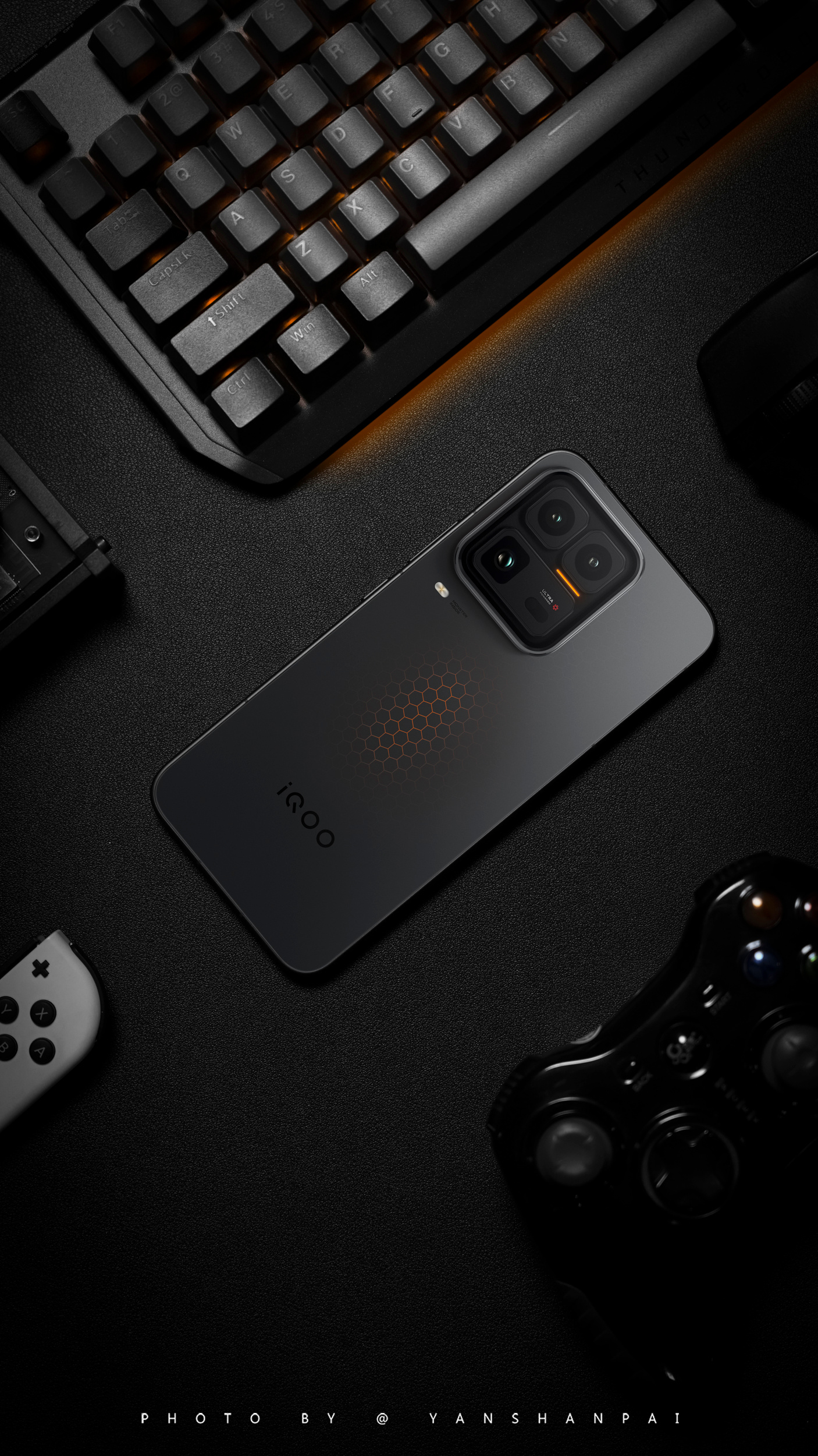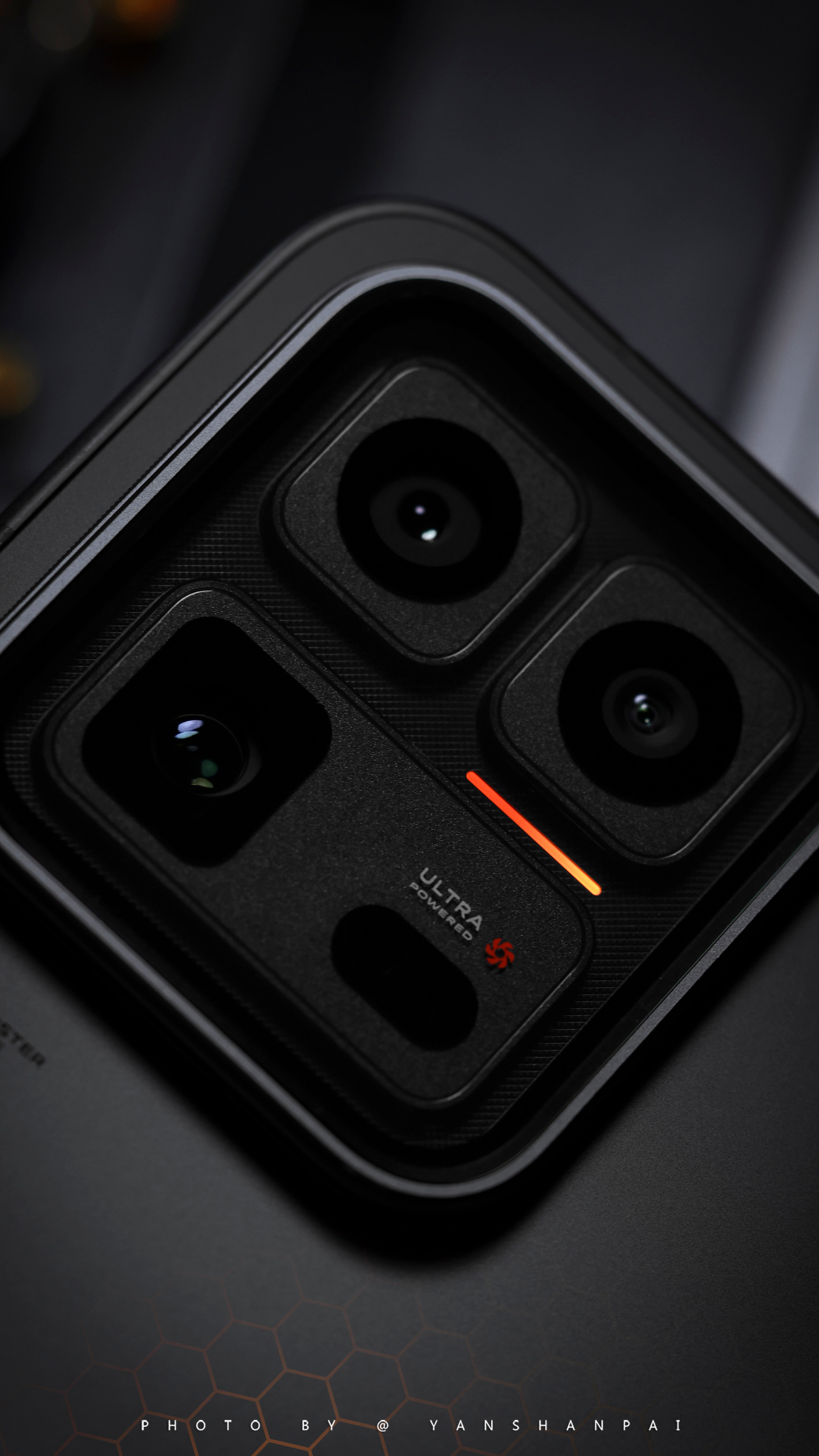 背部能量矩阵蜂巢纹理设计着实醒目,全新TOF工艺实现六边形蜂巢纹理「双纹双镀」效果,而且随着机身转动,矩阵着色会产生流光变化。黑色机身呈现的是熔岩橙色流光,银色是寒光蓝,给人一种克制但极具张力的未来感。