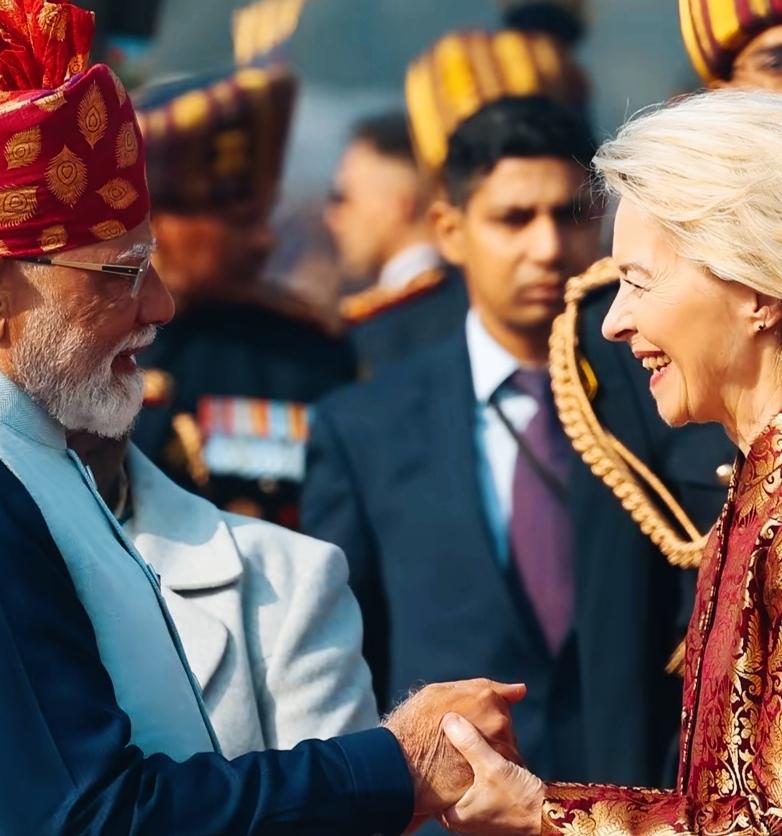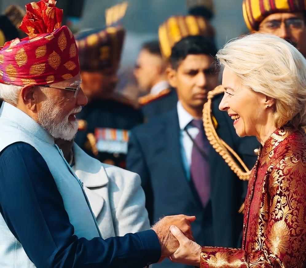 冯德莱恩见了莫迪很高兴啊! 冯德莱恩握着莫迪的双手,满脸笑容啊! 莫迪面对冯德莱恩如此热情的笑容,是不是有点惊讶啊! 冯德莱恩这笑容是发自内心的吗?
