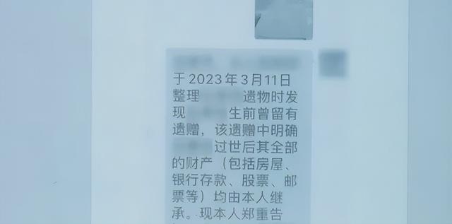 张先生大姐的儿子——外甥李炯在整理遗物时发现了一份张先生生前写下的遗嘱,上面写明,张先生奉贤区的房产、银行存单、股票等由“大外孙李烔”一人继承。据了解,张先生的遗产涉及到200多万元的银行存款、十多支股票和十多万元余额。