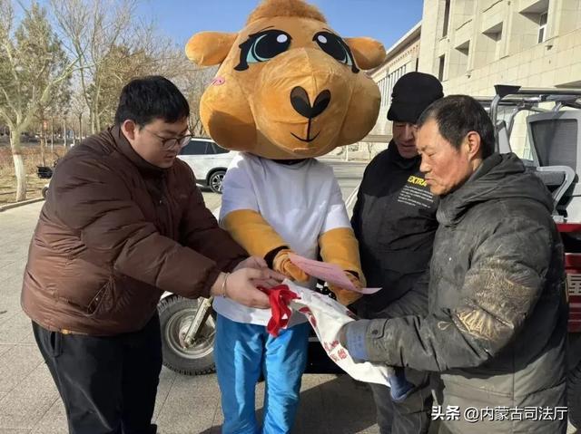 日前,阿拉善盟额济纳旗司法局工作人员化身为法治代言形象——“驼小司”,深入人流聚集区域,开展了一场主题鲜明、互动性强的道路交通安全法治宣传活动。