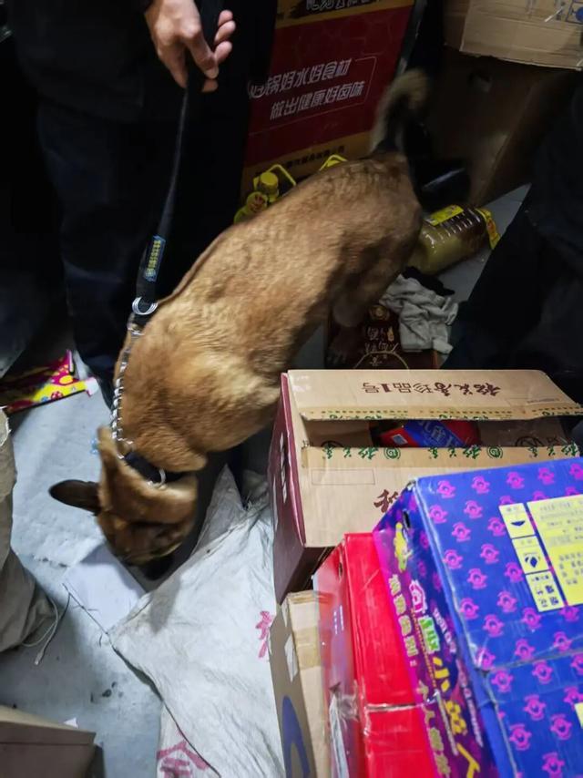 1月23日,汉阳融媒记者在执法现场见到这位幕后英雄,只见它目光警惕地扫视墙角、储物堆等隐蔽区域,循着气味开展地毯式搜索,鼻尖紧贴货架不放过任何蛛丝马迹。