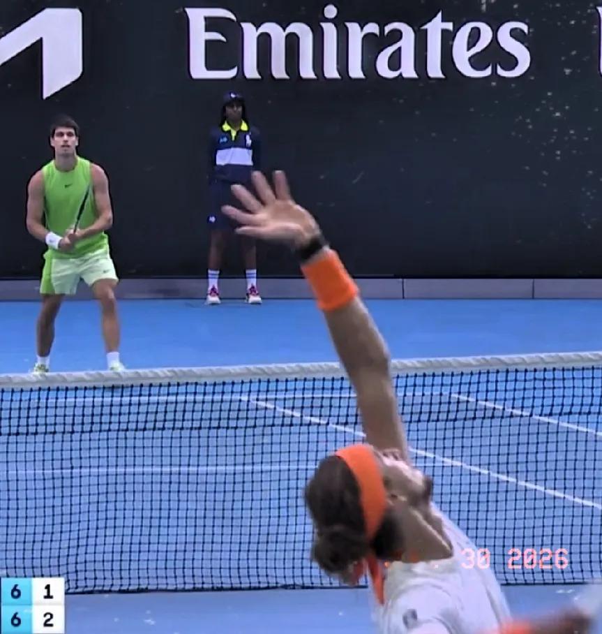 澳网半决赛阿卡大战紫薇 第四盘抢七大战: 兹韦列夫互拿1个迷你破发,比分4-4平后,兹韦列夫连保带破连拿3分,7-4胜出。 7-6(4)再下一城,连追两盘,将盘分扳平2-2。双方回到起跑线。 比赛已经打了4个多小时,从体能上看,阿尔卡拉斯危险了!