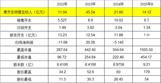 2025年上半年,康方生物营业收入为14.12亿,同比在增长33.67%。康方生物的研发开支预计全年达到14.61亿的水准,若以恒瑞医药22.83%的研发费用率水准,则康方生物的利润表正常化的营收规模为64亿左右。