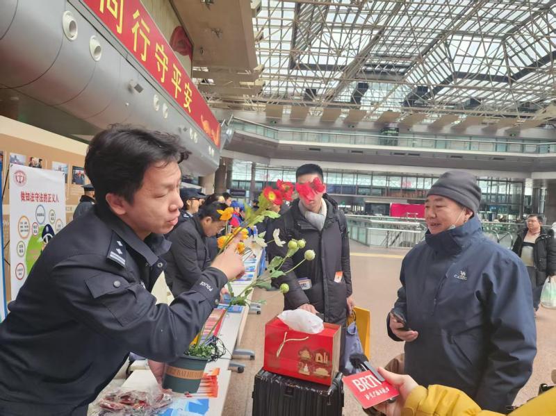 记者现场获悉,本次活动整合公安、司法、海关、城管、交通等多领域资源,通过跨部门协同、全方位宣传,织密春运安全防护网络,为出行旅客提供禁毒、反诈、反恐、普法、交通等多元内容服务,助力实现“平安春运、法治春运、温馨春运”目标。