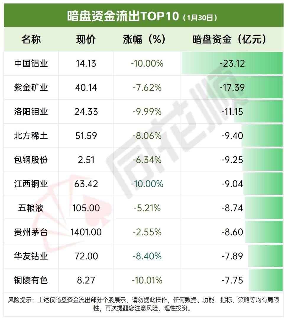 1月30日暗盘资金流出TOP10,哪些股票需警惕? 科技股暗盘资金活跃,澜起、