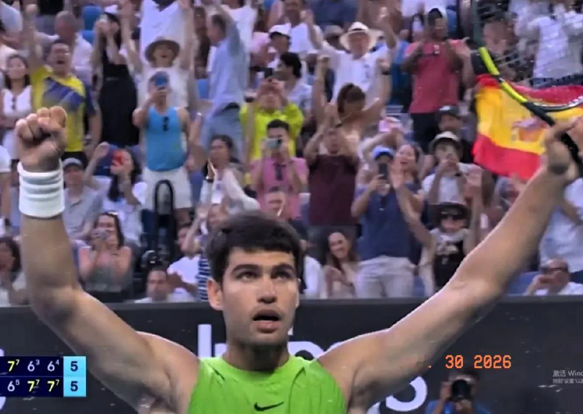 决胜盘,阿尔卡拉斯终于回破了! 太炫了!兹韦列夫的发球胜盘局,阿卡逼出2个连续破发点,在决定生死的关键点上,阿卡不再掉以轻心,提升专注度,一举实现破发。将自己从绝境中解困出来。比分追平5-5,双方回到均势,兹韦列夫保持了几乎一整盘的领先优势化为乌有。 阿卡太厉害了!