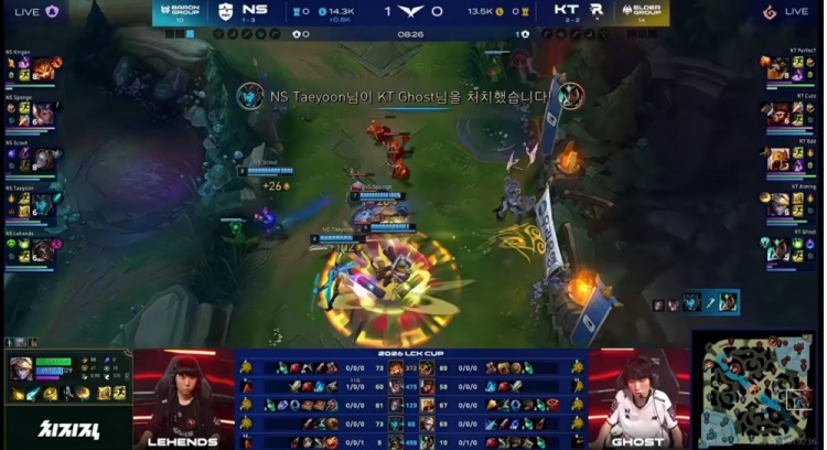 NS:上单Kingen、打野Sponge、中单Scout、下路Taeyoon、辅助Lehends