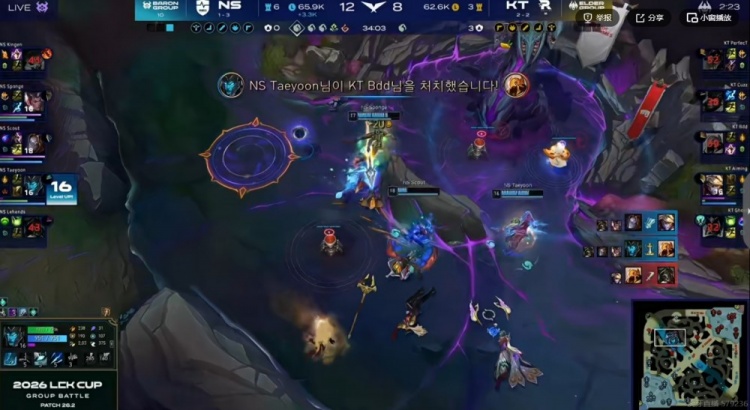 [16:16]NS拿下先锋+拆下一塔,KT则是上野合力中路顶塔强杀Taeyoon卡莉斯塔!