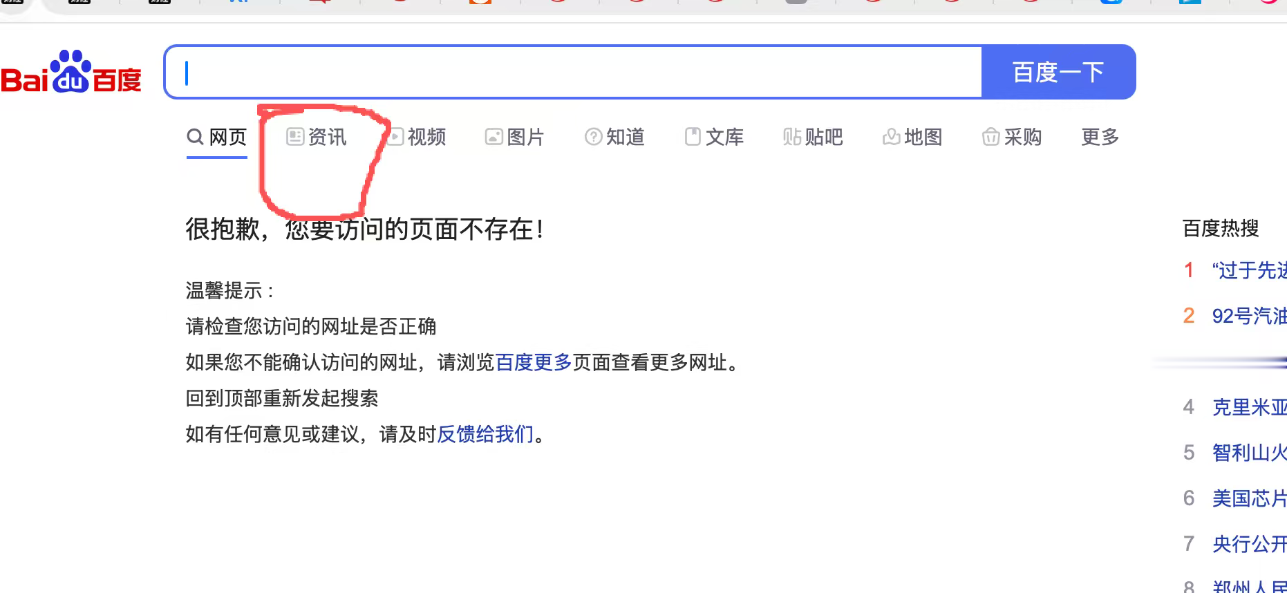 此外,部分搜索结果虽然能正常显示,但是在不同板块下,例如资讯板块中,无法显示搜索结果。