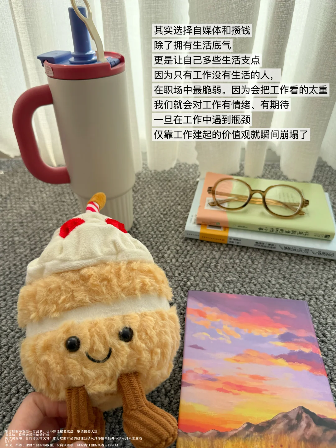 其实选择副业搞钱,除了底气更是为了多些支点。因为只有工作没有生活的人,在职场中最脆弱。因为会把工作看的太重就会对工作有情绪、有期待,一旦在工作中遇到瓶颈,仅靠工作建起的价值观就瞬间崩塌了。