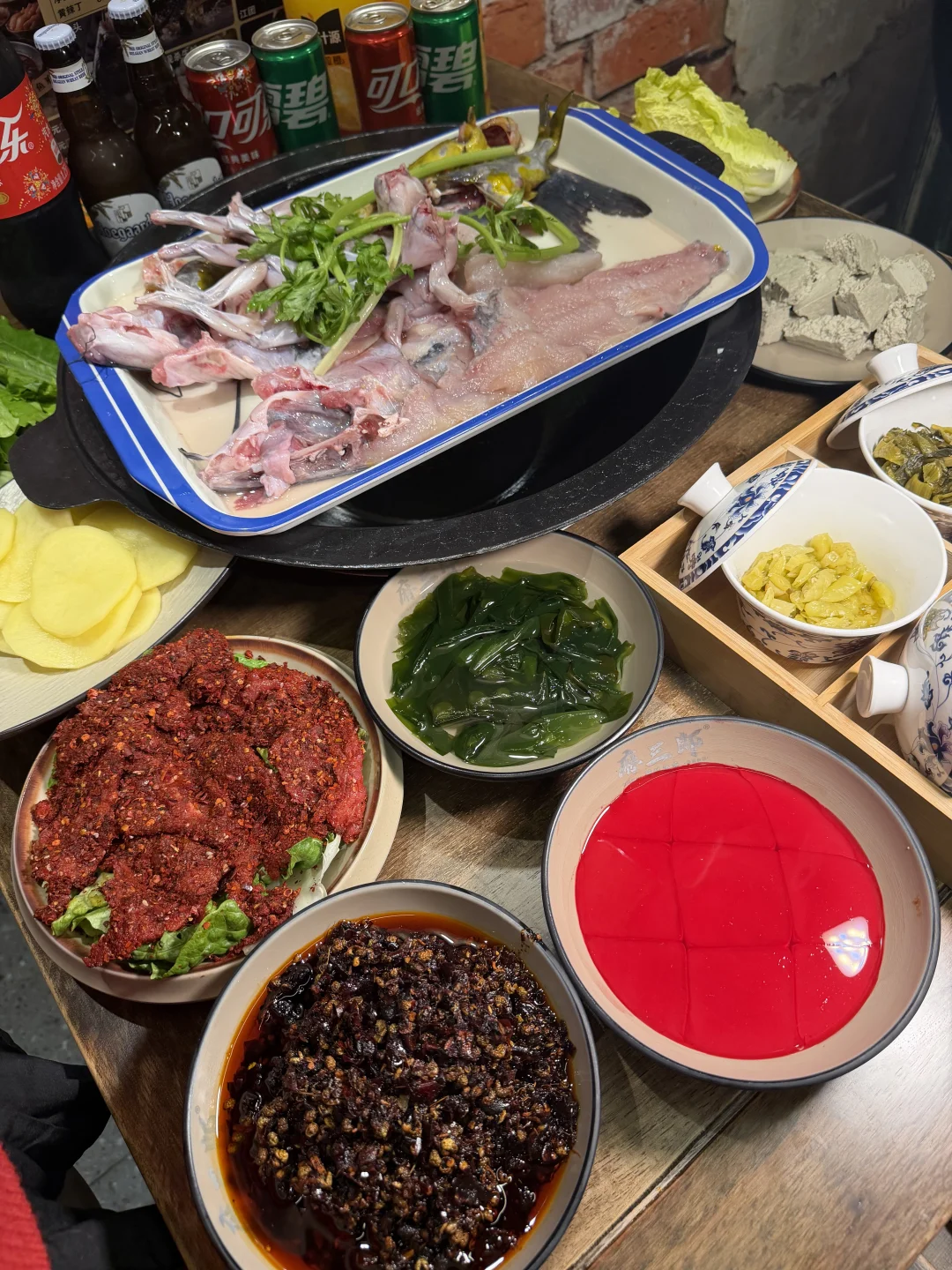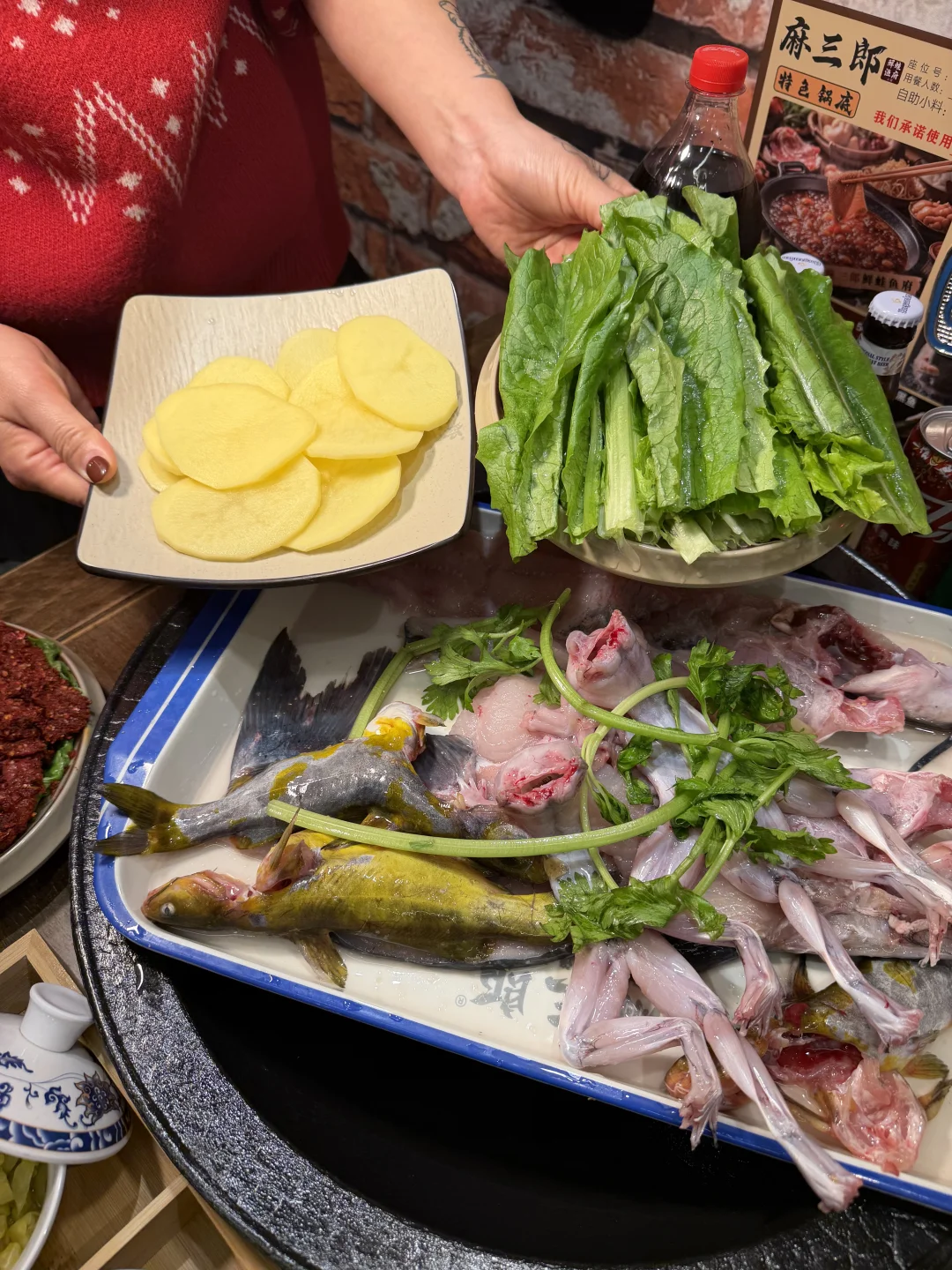 重点夸爆食材新鲜度!鱼和牛蛙都是现点现杀现做,活蹦乱跳的牛蛙处理得干干净净,鱼肉片得薄而不散,上桌时🐸蛙腿还在动!