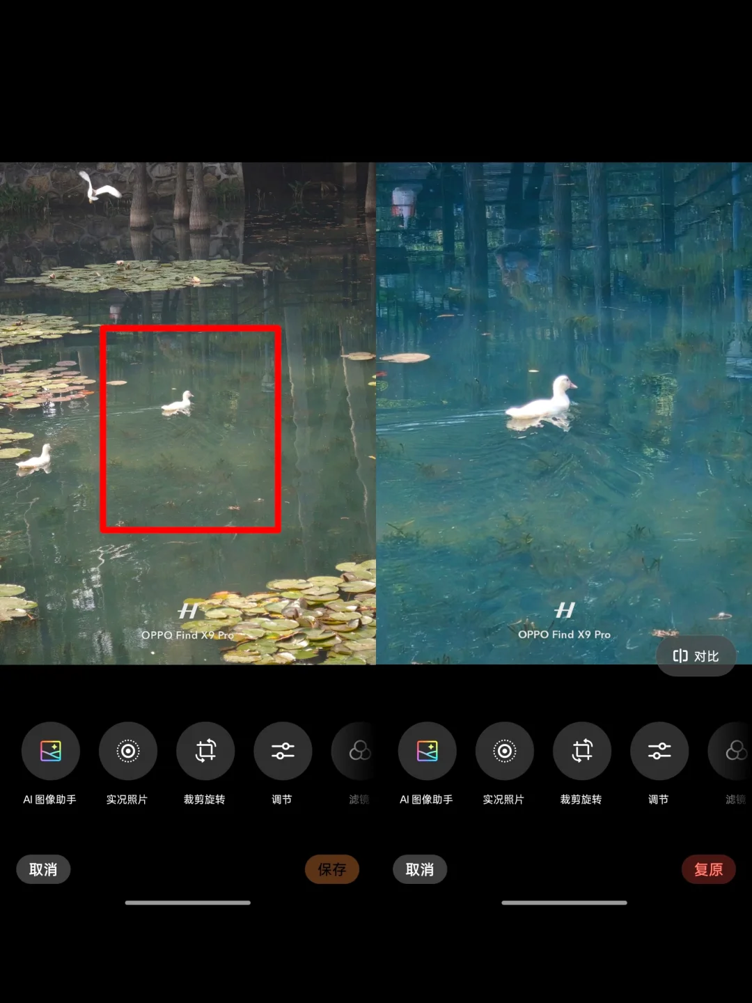 ✨今天分享一下复古绿色调氛围滤镜,这两天路过麓湖公园拍拍鸭子!发现中午的时候阳光直晒着湖边 里面的颜色有点通透的翡翠绿色! . ✨打开OPPO Find X9的大师模式 打开3x或者6x的长焦 离主体近一点 避开杂物让画面更干净一些 . 💻后期教程 手机相册自带的滤镜 滤镜:霓虹 曝光+3 鲜明度+19 高光-12 阴影+16 对比度+11 饱和度+8 亮度+12 色温-9 色调+10 .