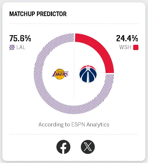 湖人明日客场挑战奇才,ESPN给出湖人胜率高达75.6%!洛杉矶湖人湖人vs奇才