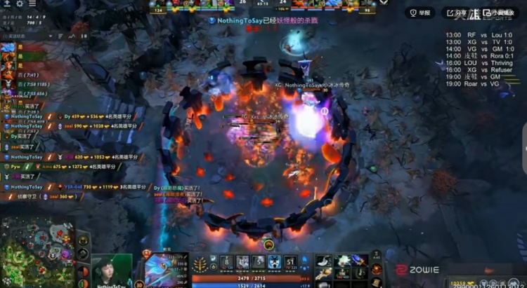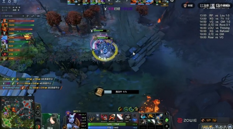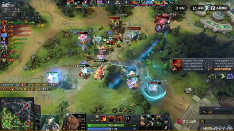 30分钟野区团XG先手输出不够秒不掉zeal黑贤被他拉墙三个!Refuser又是1换3!但是双方经济拉不开啊!XG还找机会打掉了魔晶!39分钟Xxs马尔斯羊刀第一波效果一般,Refuser交出Pyw小小买活,打出1换2再拿二代肉山!YSR-04E龙骑士继续带盾!Refuser先破XG上路高地!