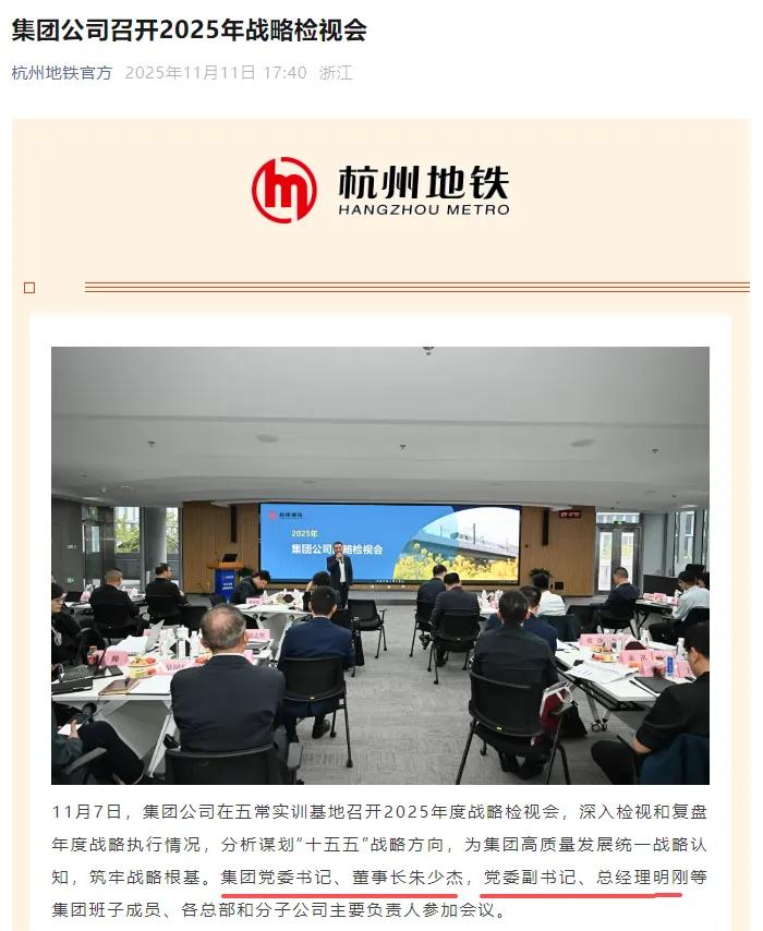 据杭州地铁官方此前新闻显示:集团党委书记、董事长为朱少杰,明刚为党委副书记、总经理。