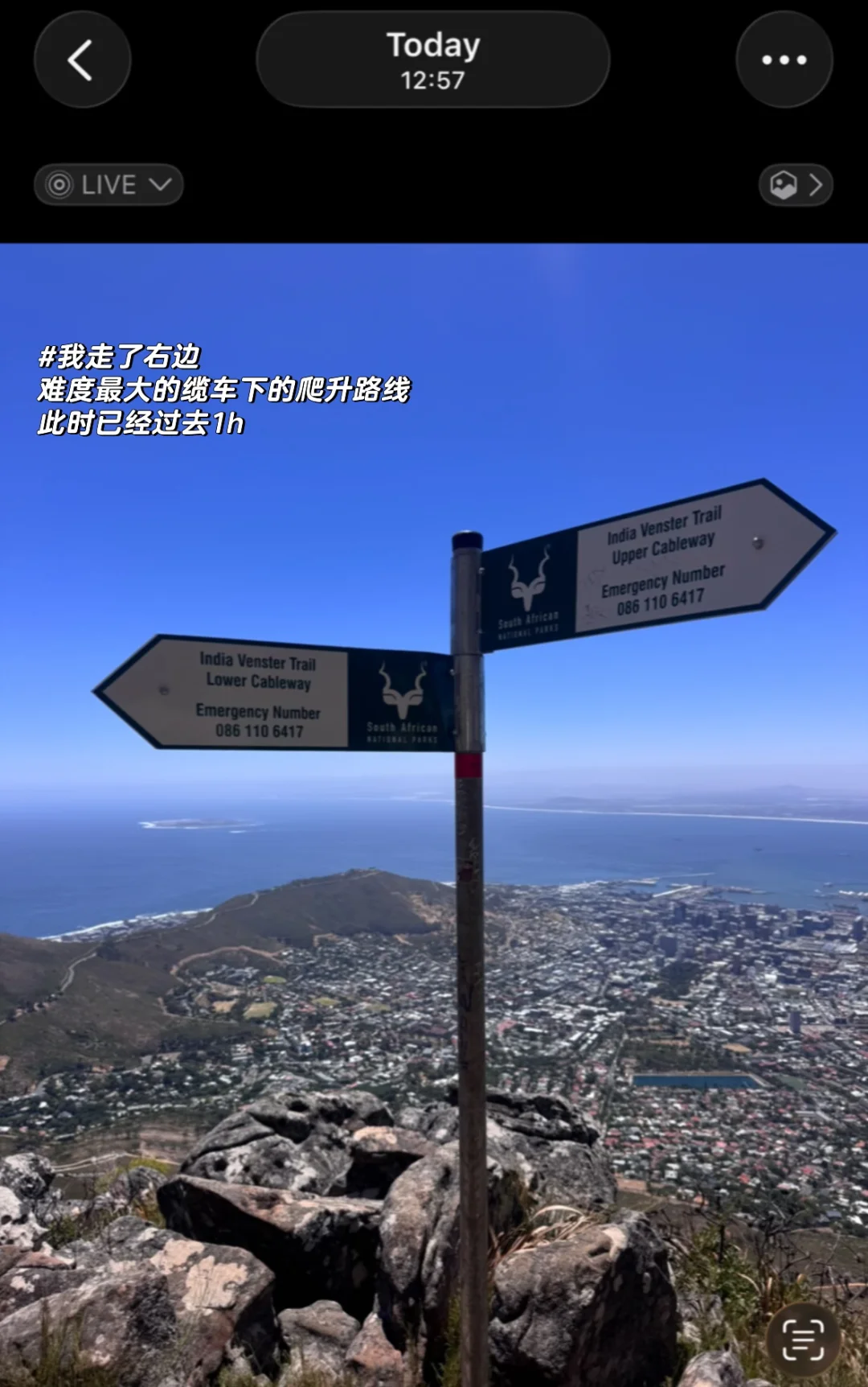 风景没得说,桌山几乎可以看到开普敦所有最精华的景点,徒步看到的景色更全面,无敌海景+山景,各种石头随意大小躺(注意安全)边上全是悬崖很好出片!还有很多漂亮的cave可以探秘哟