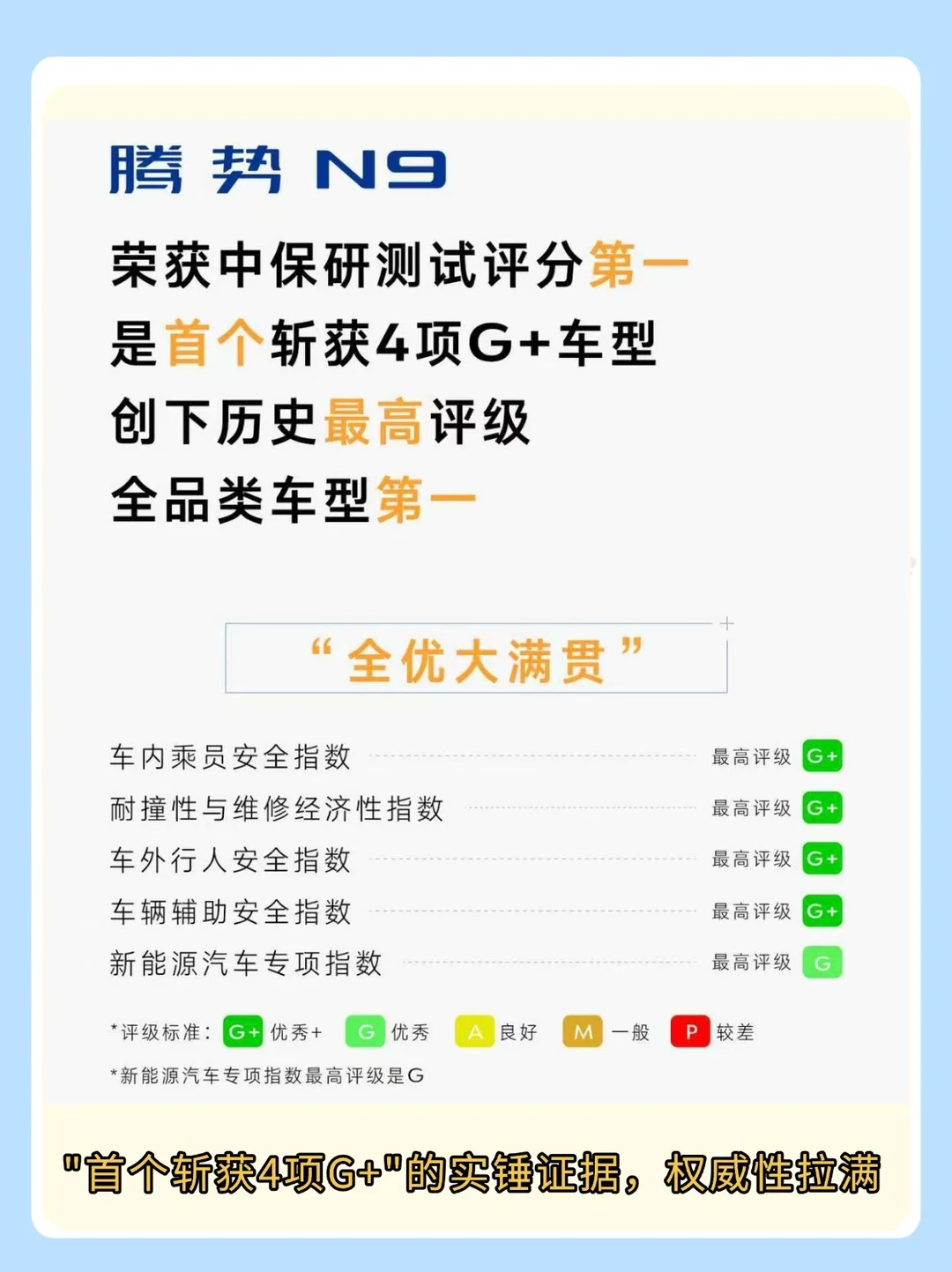 就在1月21日,中保研(C-IASI)最新成绩公布,腾势N9直接拿下4项G+的车型!五大维度全优大满贯,这成绩是要刷新中保研历史啊!📊