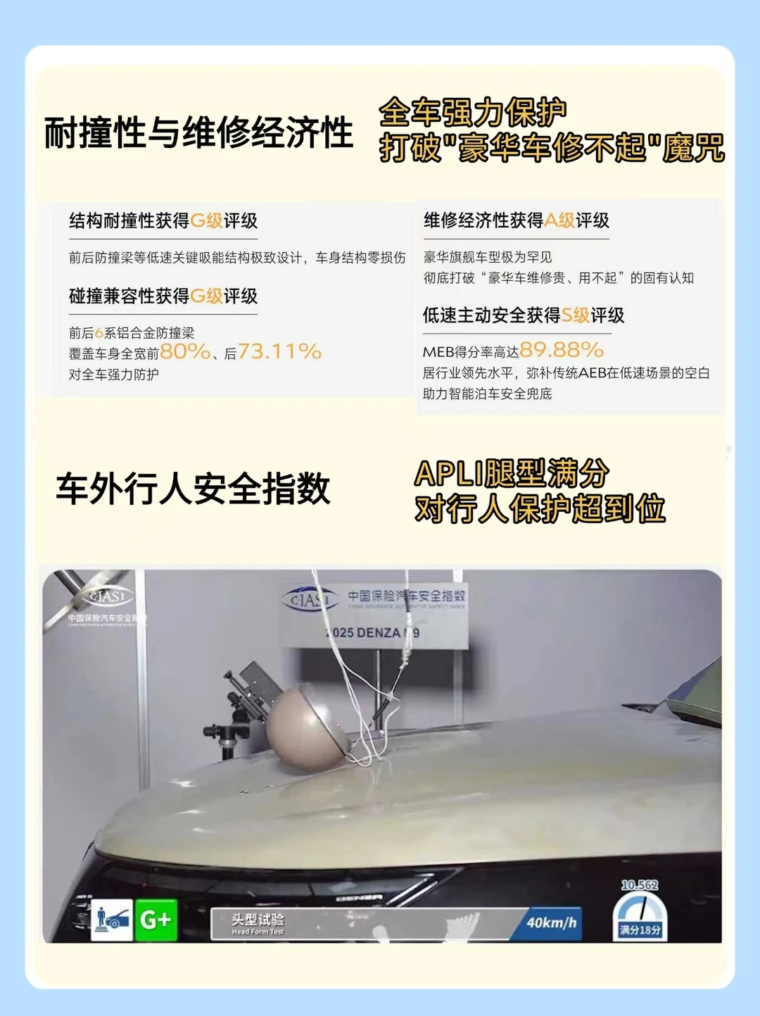 ✅ 车外行人安全G+(APLI腿型满分,对行人保护超到位)