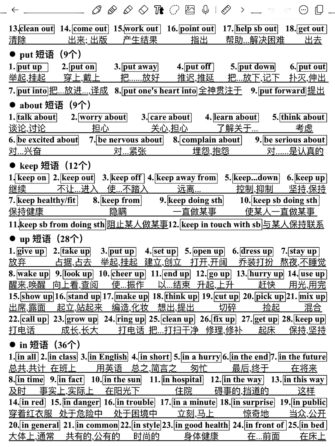 • keep 短语(12个)
