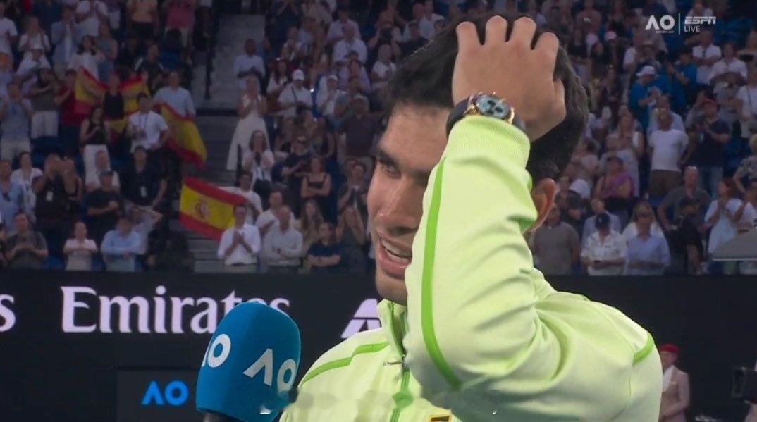 阿尔卡拉斯回应:“哇,谢谢你现在就给我这么大压力啊😂 开个玩笑!能有机会在这里首次闯入决赛,我真的很开心。这是我长期追求的目标,过去两周的表现非常出色,我的竞技状态提升了很多。如果没有现场大家的支持,我不可能站在这里……在你们面前比赛是真正的享受。是你们让我重新燃起斗志,是你们在每个回合、每一分上推动着我。不仅这场比赛,整个赛事期间获得的支持都让我无比感激。”❤️