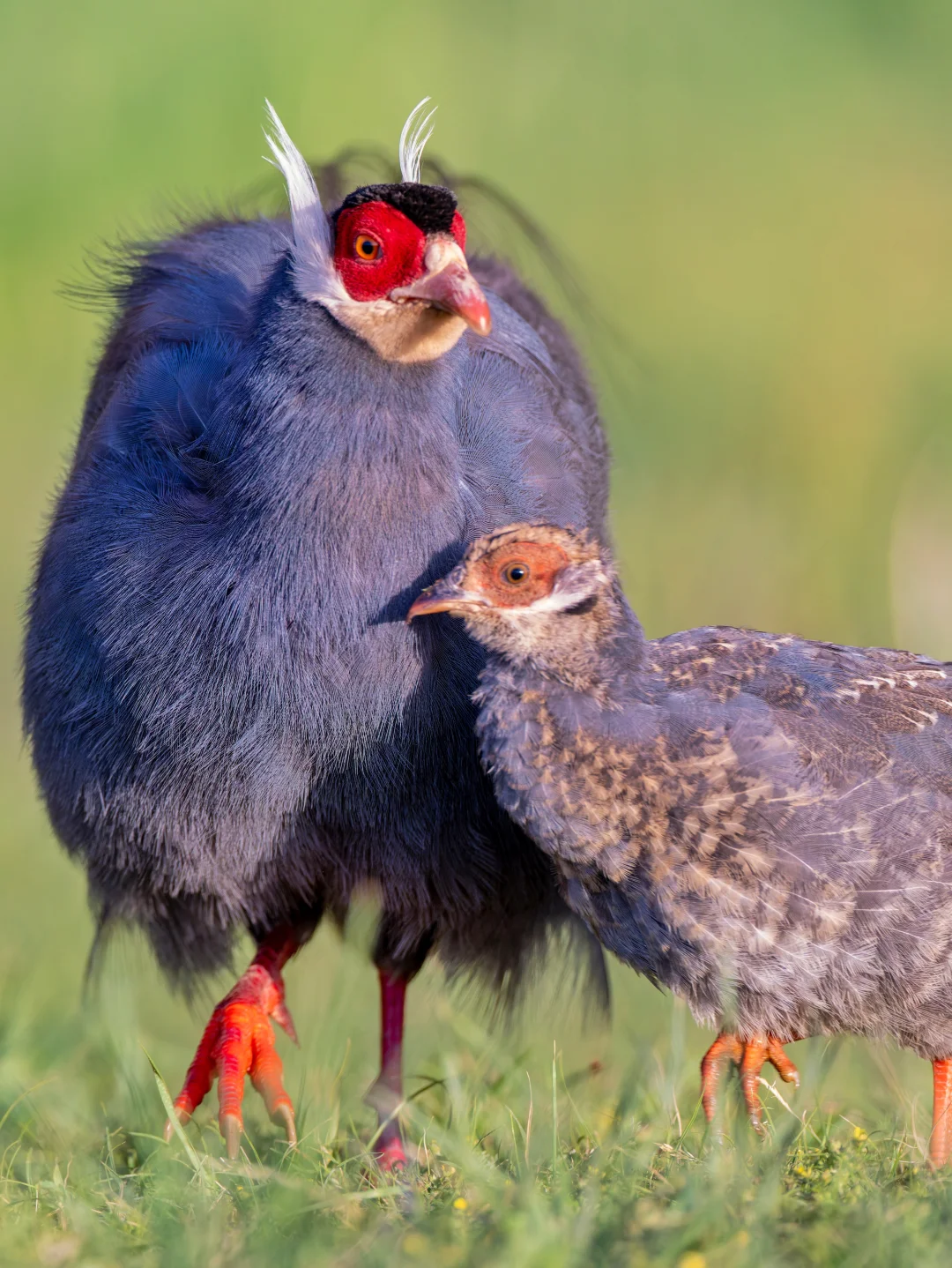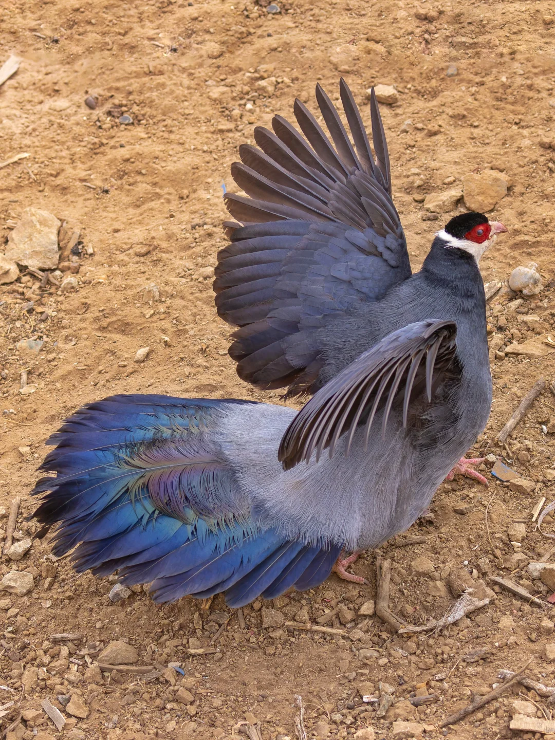 马鸡们的脸都非常的鲜红,尾羽像马尾一样,所以叫“马鸡”,体羽颜色和尾羽颜色有区别。不过马鸡的英文名字叫“Eared Pheasant”(耳鸡),因为它们白色的耳羽。