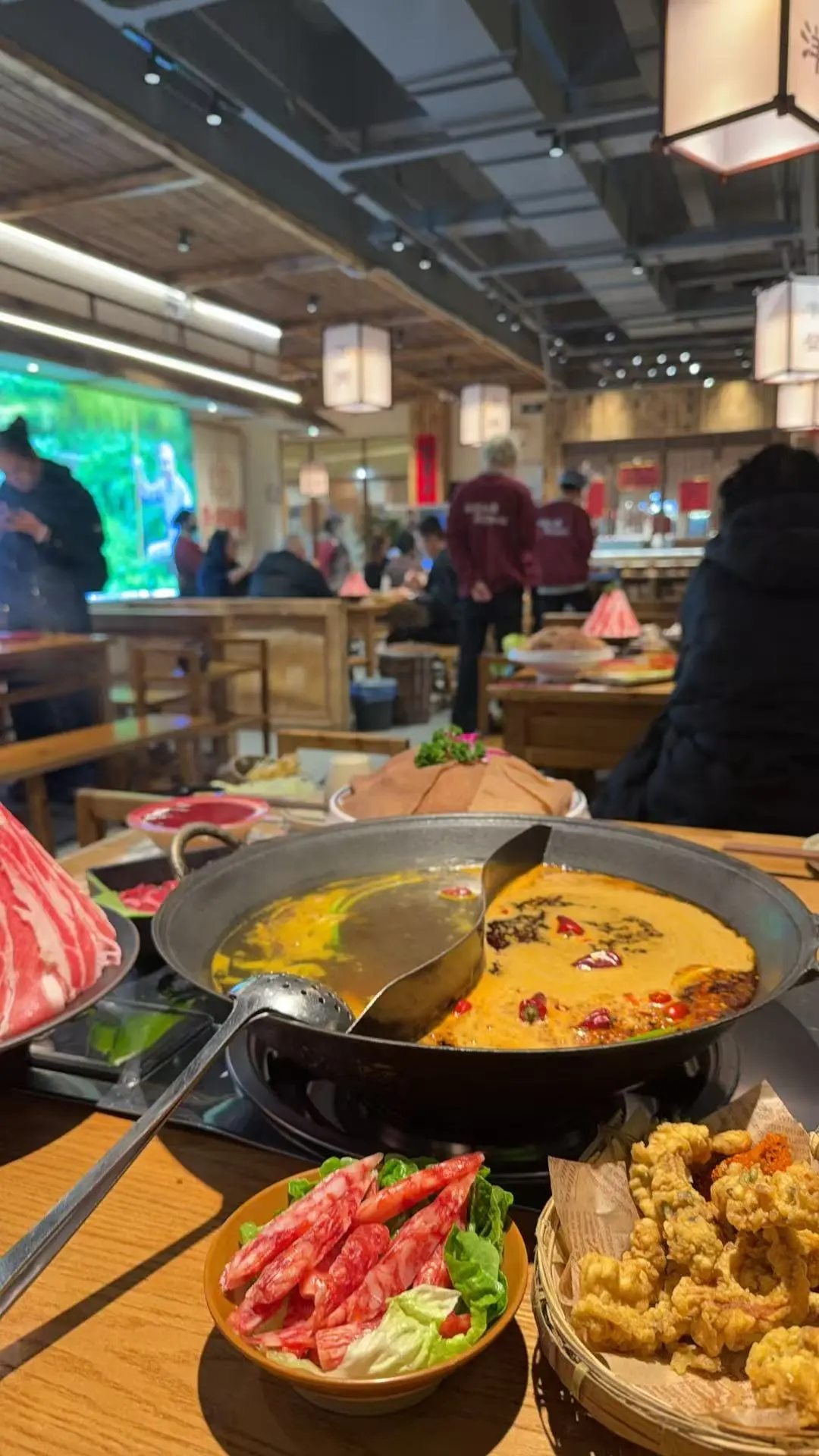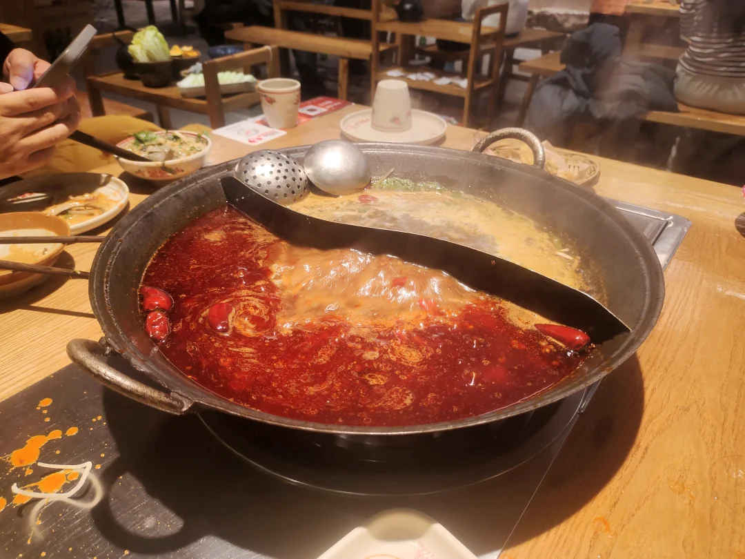 店里环境就是浓浓的重庆市井味道,木桌木凳,各种绿植点缀期间,坐下那叫一个巴适。🍓夸夸牛油锅底,麻辣香醇,辣不呛喉,太懂常州胃了