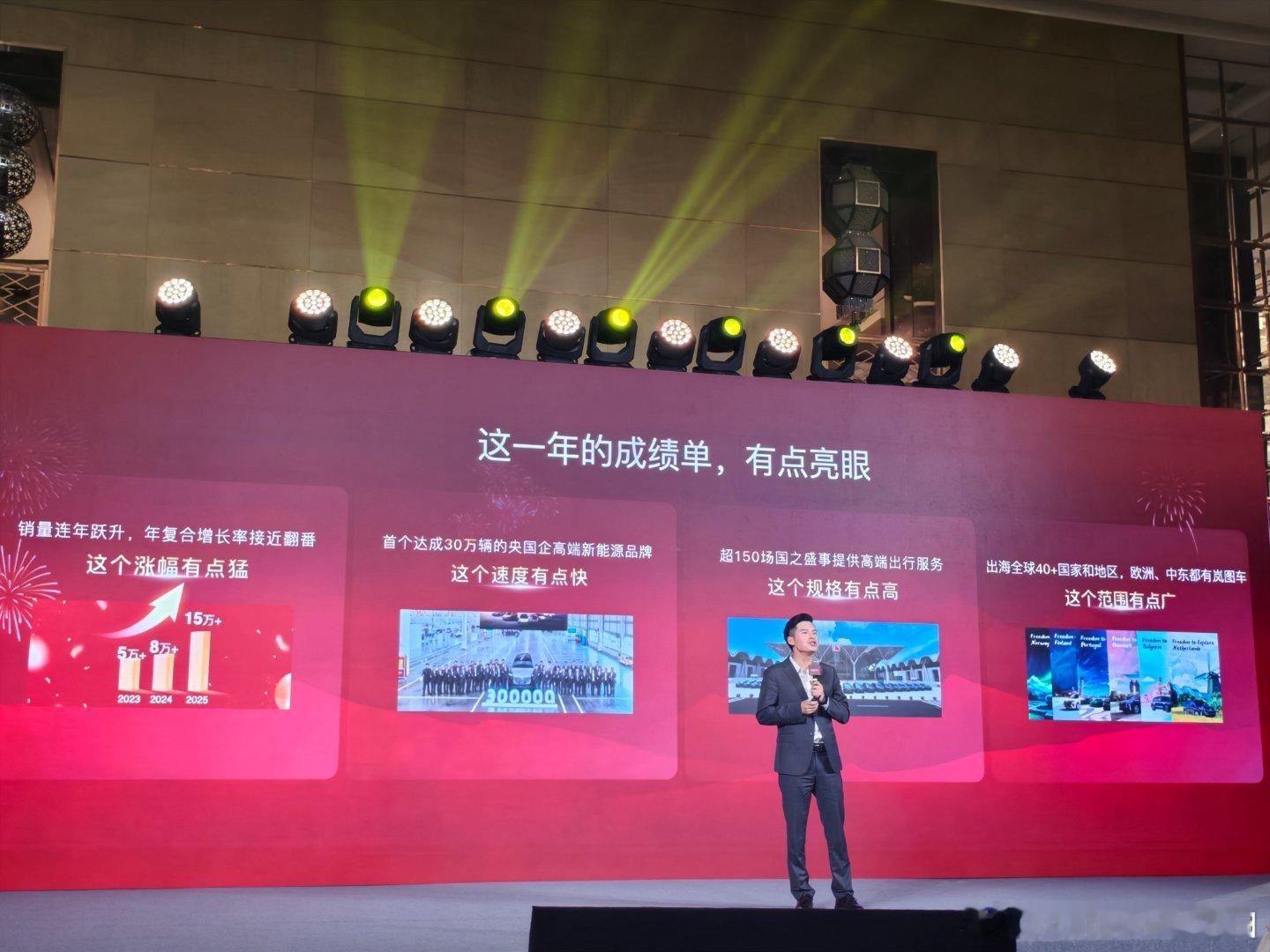 岚图今晚在上海的媒体答谢,也展示了不少成绩。销量这块儿,相比24年直接暴涨到15万。这里面主力军是梦想家和去年年底发布的泰山。