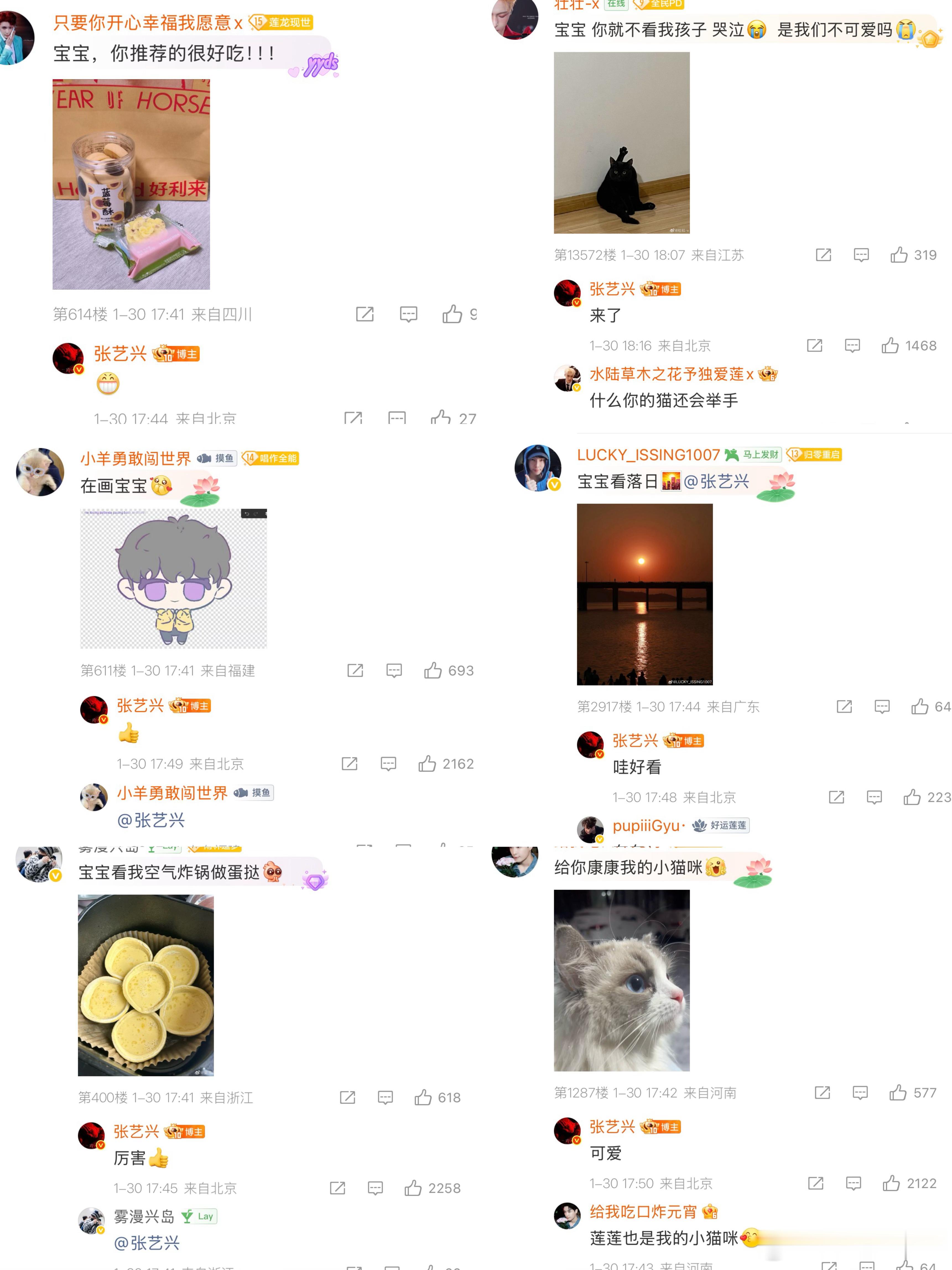 张艺兴空降超话和粉丝聊天,本来想偷偷看看粉丝在超话里干啥被发现了!然后疯狂翻牌,小动物,美食,翻牌率好高!又是被张艺兴宠爱的一天!