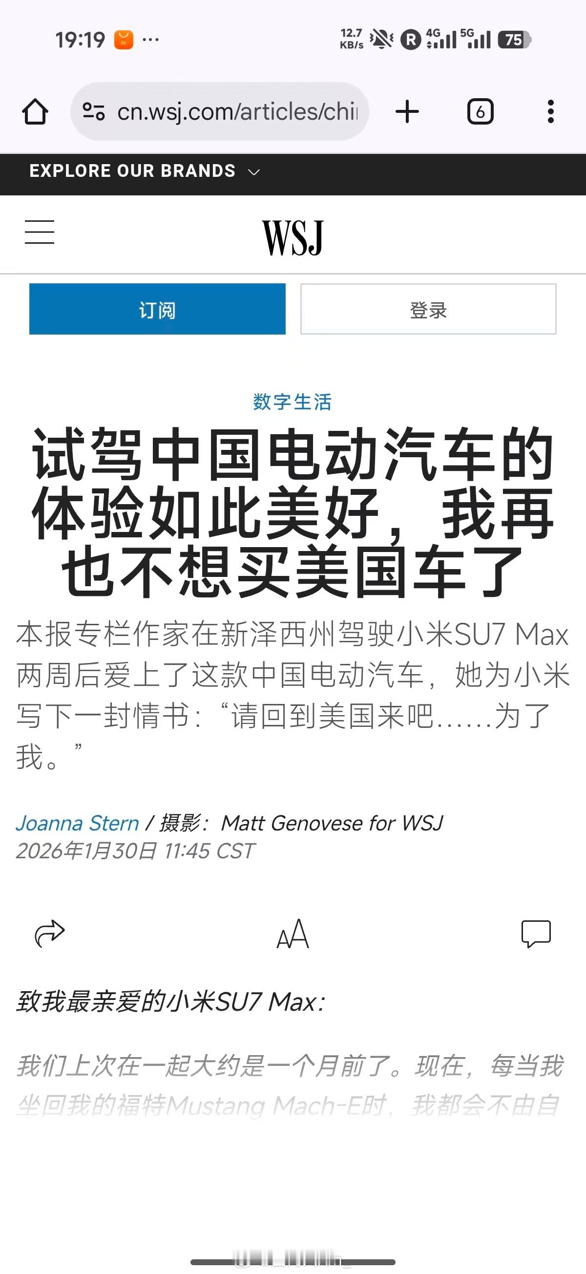 美国《华尔街日报》科技专栏作家乔安娜·斯特恩在试驾小米SU7 Max两周后发文表示:“试驾中国电动汽车的体验如此美好,我再也不想买美国车了”。