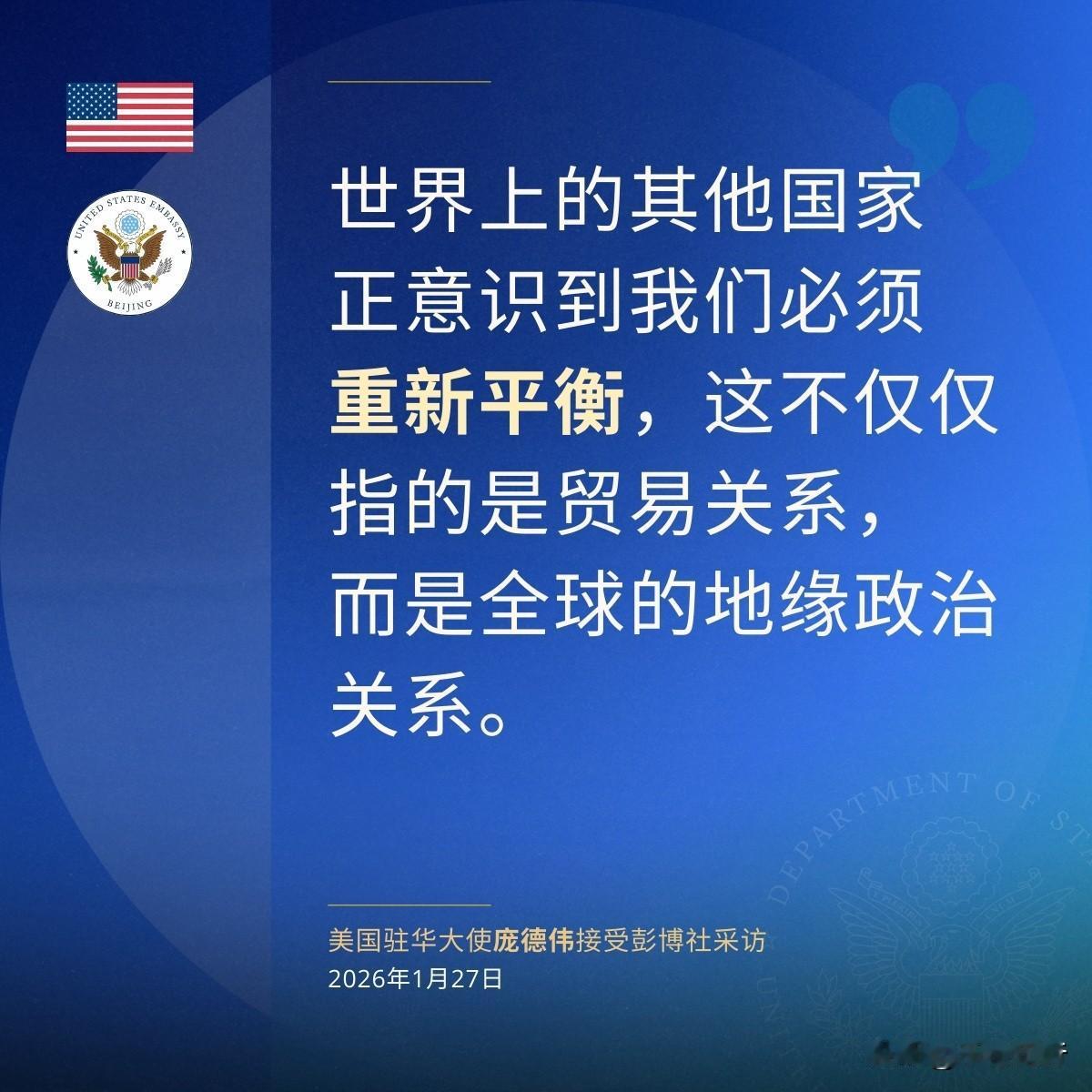 美国带头组团收保护费了 美国驻华大使庞德伟最近发话了,说美国在“磁体危机”里代表盟友去谈判,那意思就是:看,我这当大哥的多够意思。 这种“我为你操碎了心,你必须得支持我”的逻辑,简直是把地缘政治玩成了黑帮片里的收保护费。庞德伟还特意强调,“美国优先”不代表“美国独行”,潜台词就是:肉我要先吃,但活儿大家得一起干,锅也得大家一起背。现在他们不仅要重新平衡贸易,还要重塑全球地缘政治,主打一个全方位掌控。 说白了,这就是典型的霸道总裁式社交:我帮你点好了菜,你也必须说好吃,最后还得是你去结账。这种所谓的“重新平衡”,不过是换个姿势让全世界继续为美国的利益买单罢了。 这出戏演到现在,盟友们心里估计都在想:这大哥,能不能退货啊? 想看更多这种地缘政治的黑话翻译?点个关注,带你拆穿那些外交辞令的真面目。