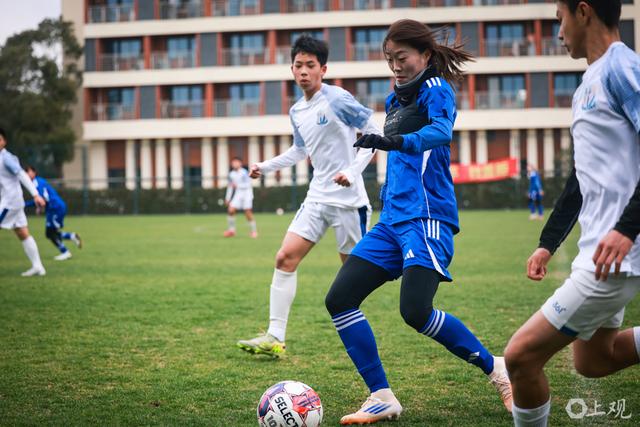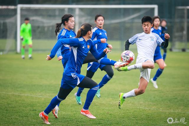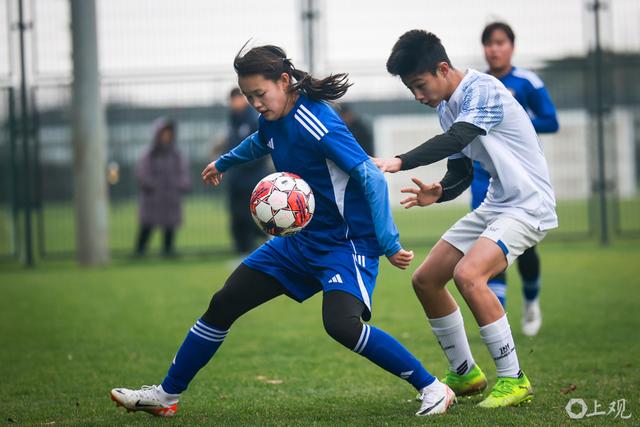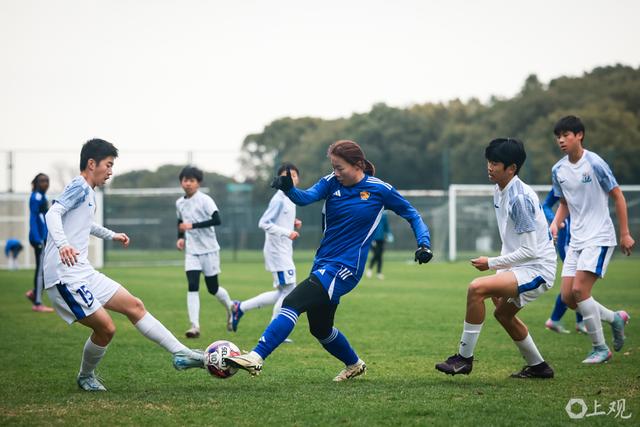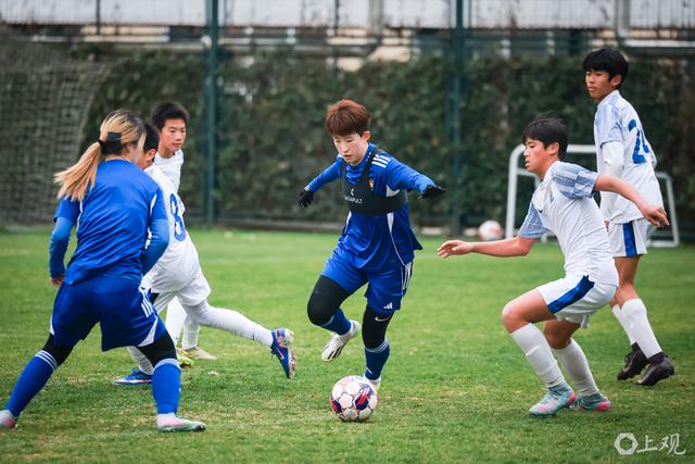 近期与申花U14男足的教学赛,面对身体条件占优的男足梯队,上海女足2比1逆转取胜。