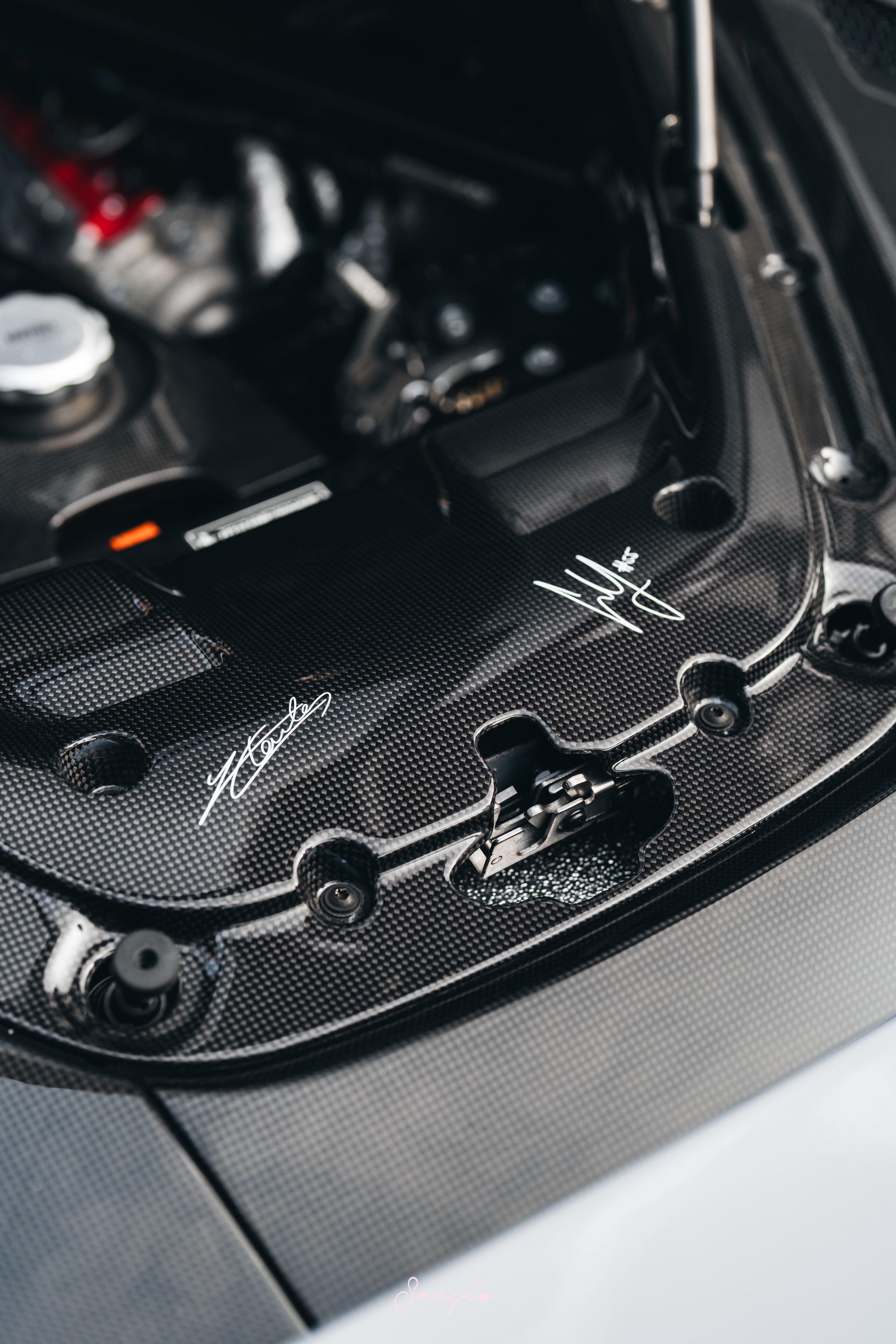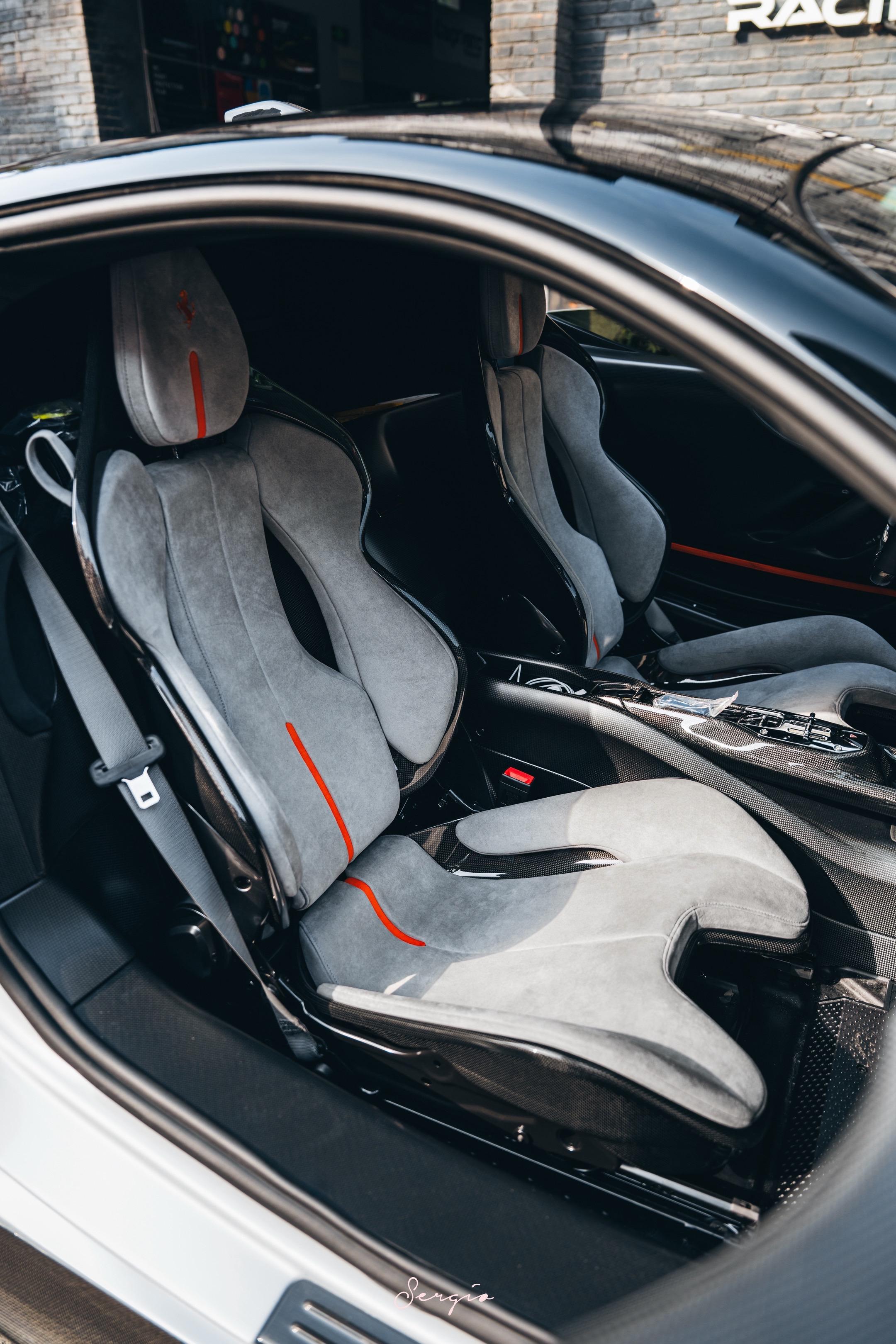 南昌这台XX虽然外观搭配是标准Spec,但配置真的很高,全车满碳,白色内饰,甚至机舱内还选了赛恩斯与乐扣的签名,有一种肉埋在饭里的意味